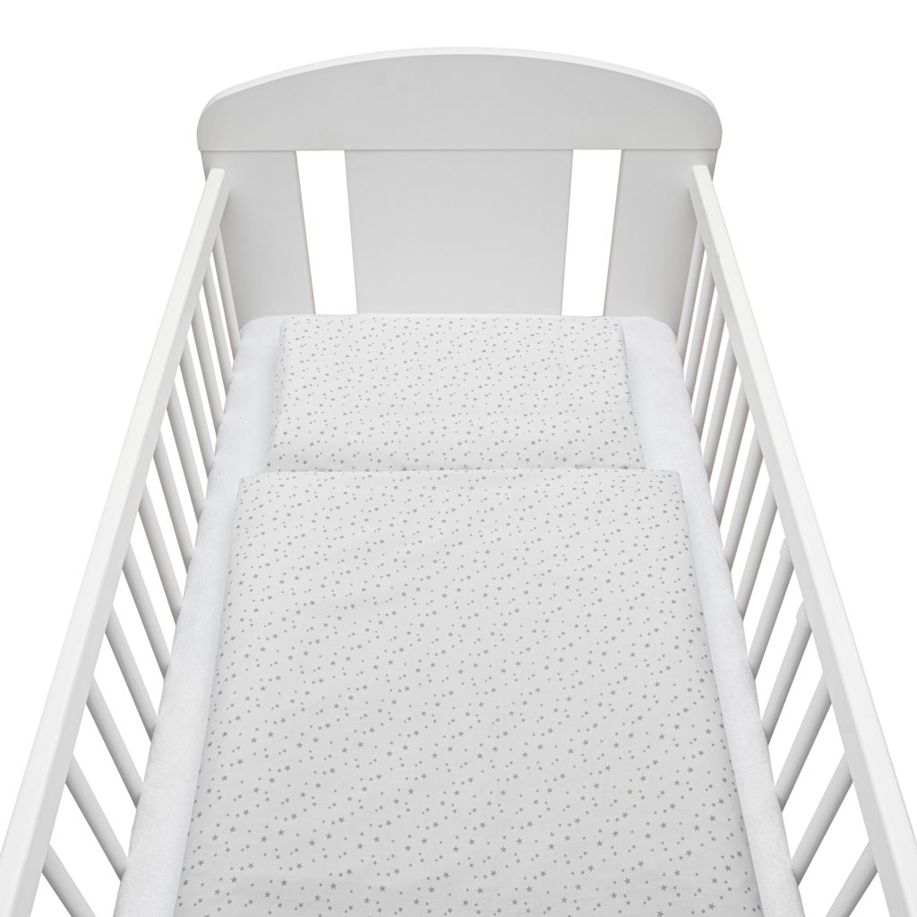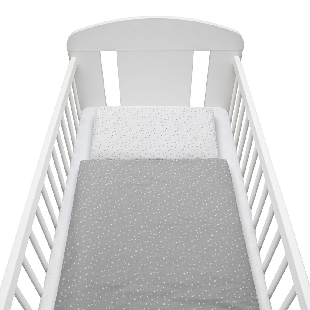 New Baby 2-piece crib set for babies. The set has beautiful cheerful pictures and is made of soft material. It includes a pillowcase approx. 40x60 cm + duvet cover approx. 100/135cm. Material 100% cotton.