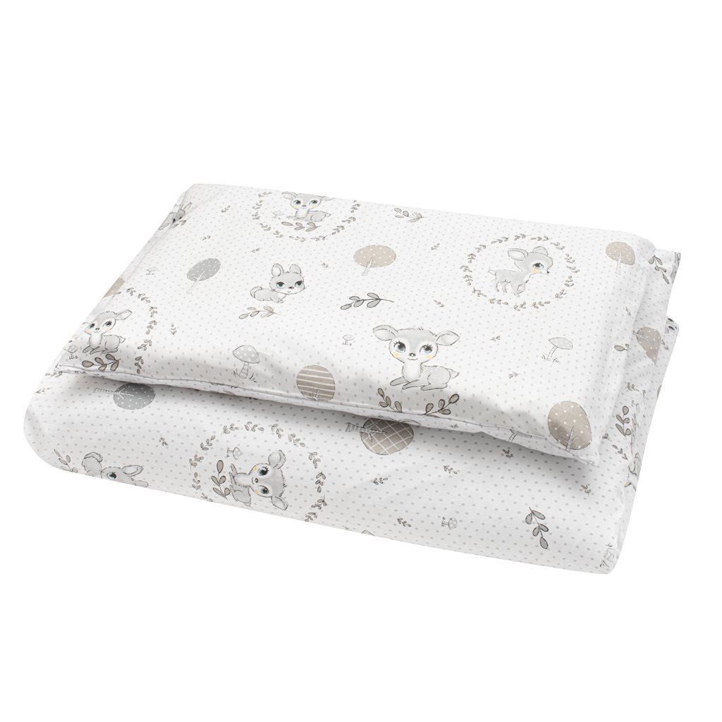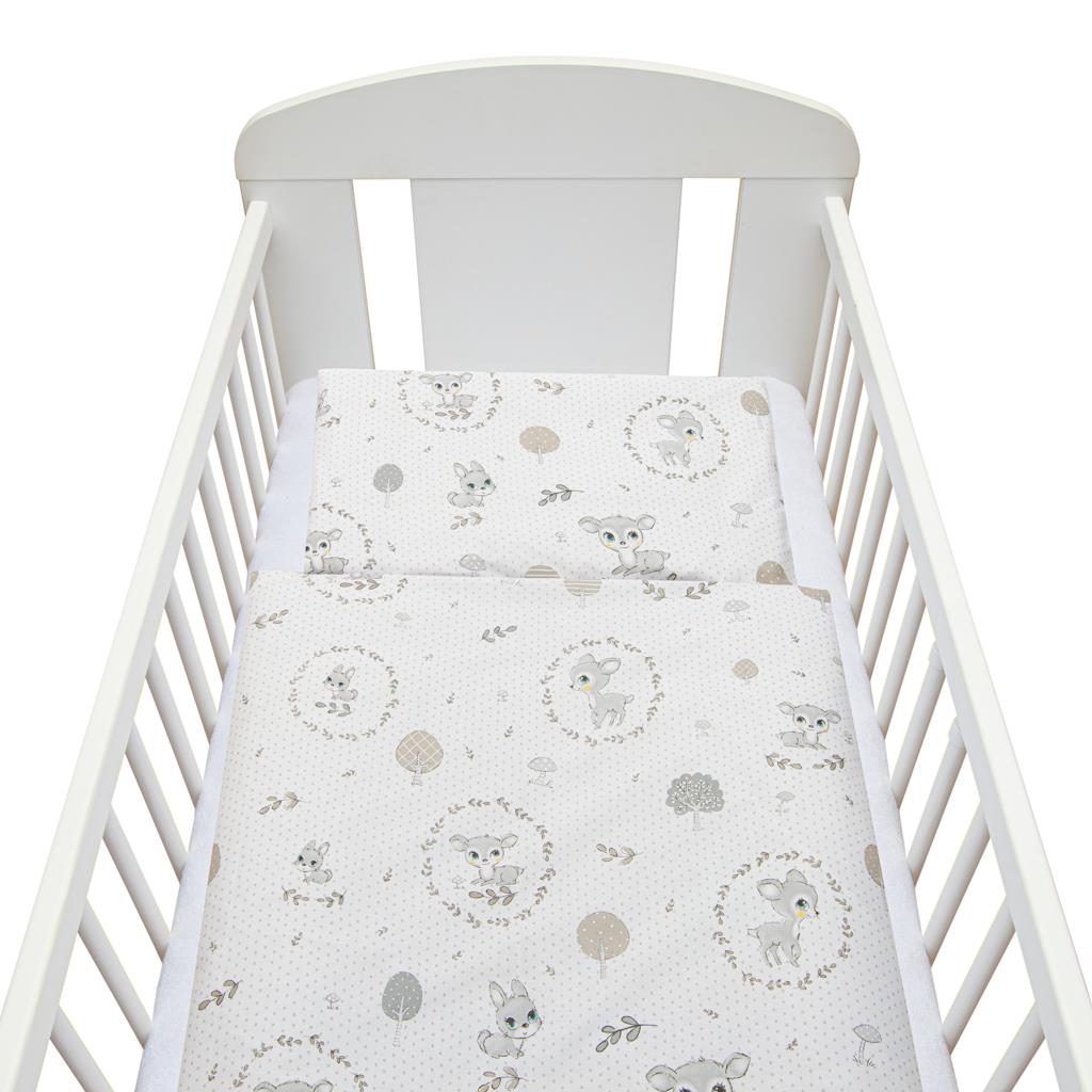 New Baby 2-piece crib set for babies. The set has beautiful cheerful pictures and is made of soft material. It includes a pillowcase approx. 40x60 cm + duvet cover approx. 100/135cm. Material 100% cotton.