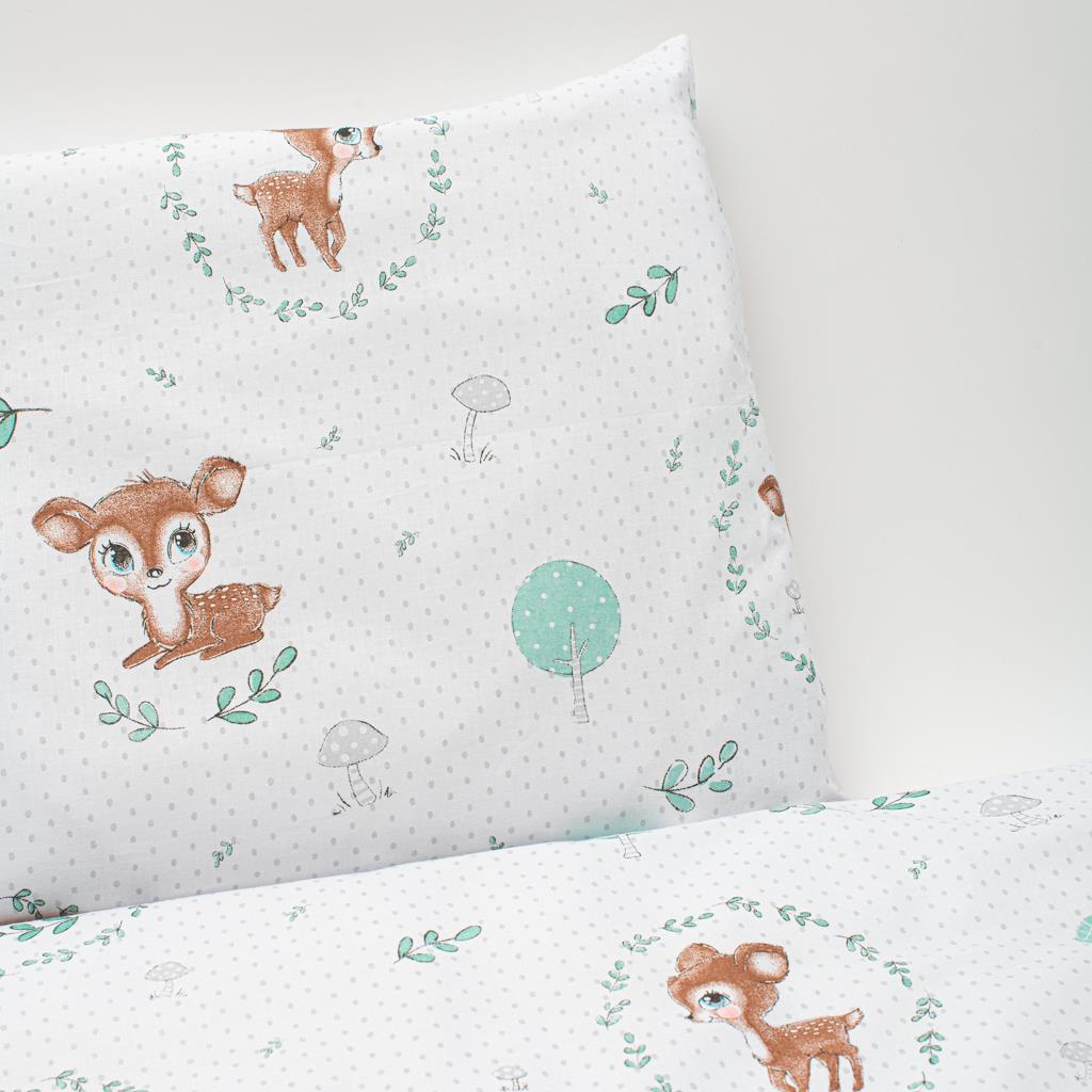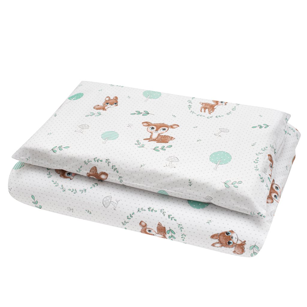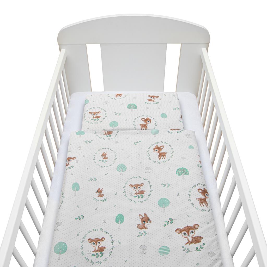 New Baby 2-piece crib set for babies. The set has beautiful cheerful pictures and is made of soft material. It includes a pillowcase approx. 40x60 cm + duvet cover approx. 100/135cm. Material 100% cotton.