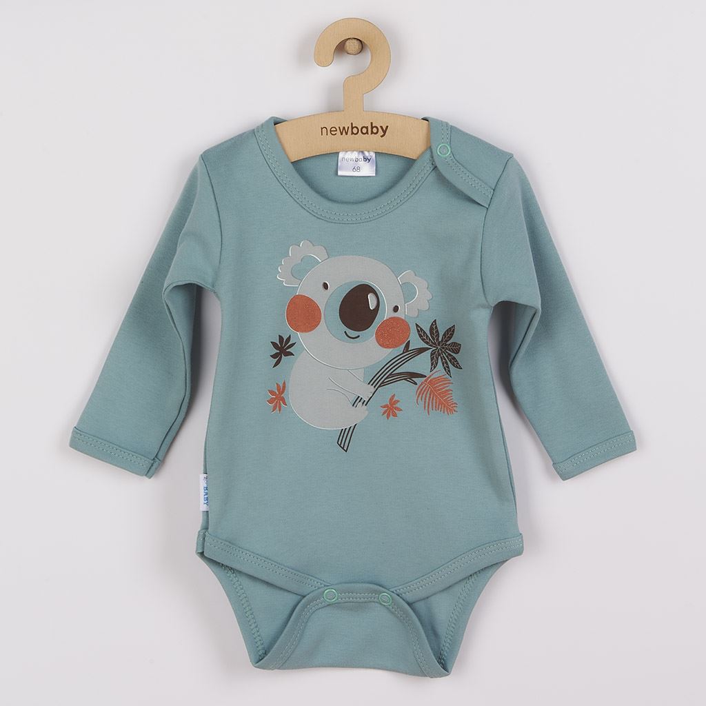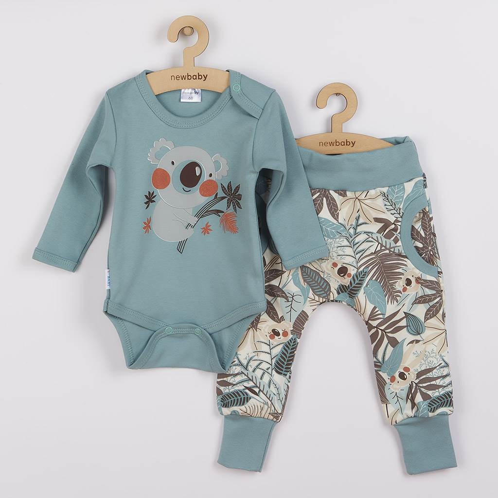 Stylish and practical 2-piece infant set for babies by the Czech brand New Baby Rebel. The set includes sweatpants and bodysuit. The bodysuit is decorated with a cute picture of a koala. Practical stud fastening on the shoulder and between the legs will make dressing and changing very easy. The stylish sweatpants are decorated with piping around the pockets, a colourful wide hem with elastic at the waist and a hem without elastic on the legs. 100% cotton.