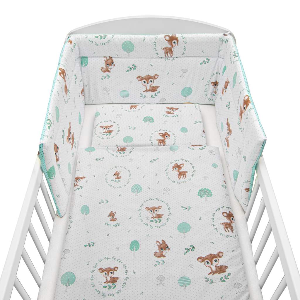 The New Baby 3-part crib set is a product of the Czech brand. The set is made of 100% cotton. It includes a pillowcase approx. 40x60 cm + a duvet cover approx. 100x135 cm and a mantle approx. 31x175 cm. Material 100% cotton.