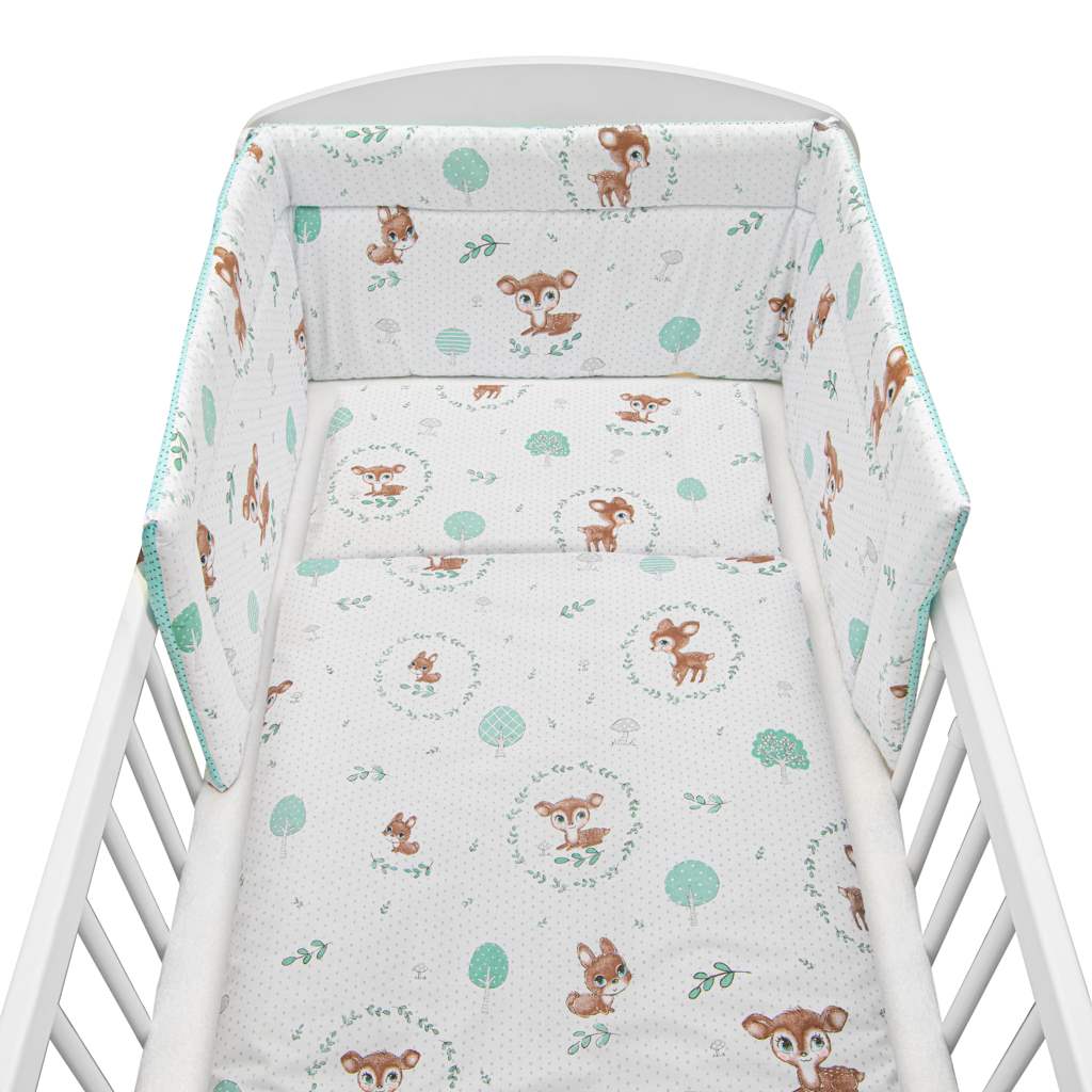 The New Baby 3-part crib set is a product of the Czech brand. The set is made of 100% cotton. It includes a pillowcase approx. 40x60 cm + a duvet cover approx. 90x120 cm and a mantle approx. 31x175 cm. Material 100% cotton.