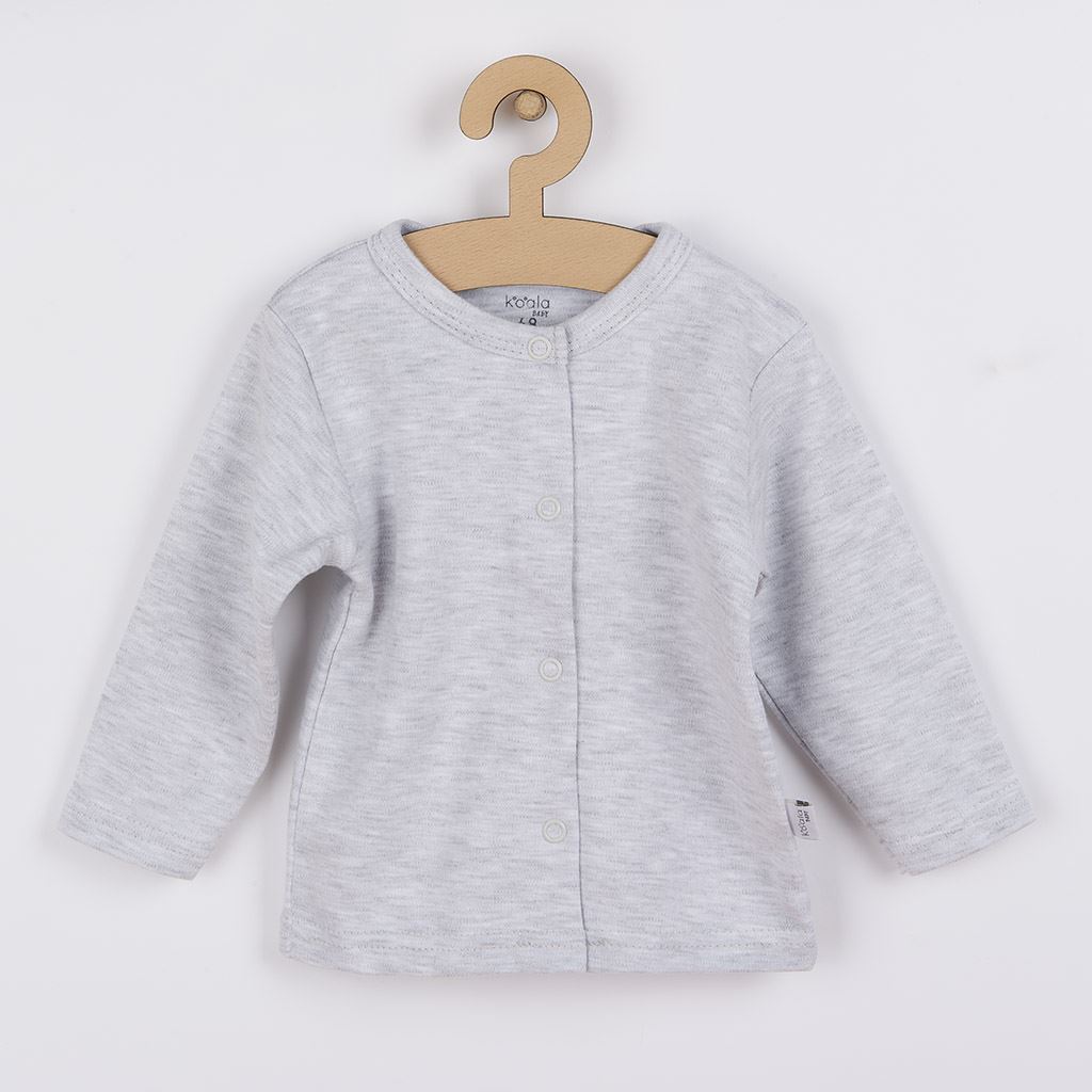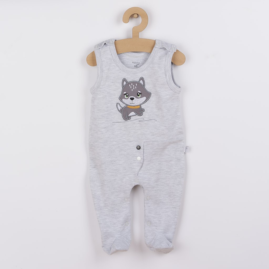 Charming 3-piece cotton Koala Doggy set. The set includes a cap, jacket, onesie and is suitable for babies from birth due to its softness and softness. The onesies are decorated with a cute picture of a dog. The picture is lined on the inside with an anti-scratch lining. They are fastened with studs on the shoulder and between the legs, which makes dressing and changing easier. The jacket fastens with studs along the entire length. The cap with a wider brim covers the ears beautifully, does not press on the baby's head and is decorated with a picture of a little dog. The picture is lined on the inside with an anti-scratch lining. The set is made of pleasant and high quality material in which your baby will feel comfortable. The set with a modern design is suitable for both girls and boys. 100% cotton.