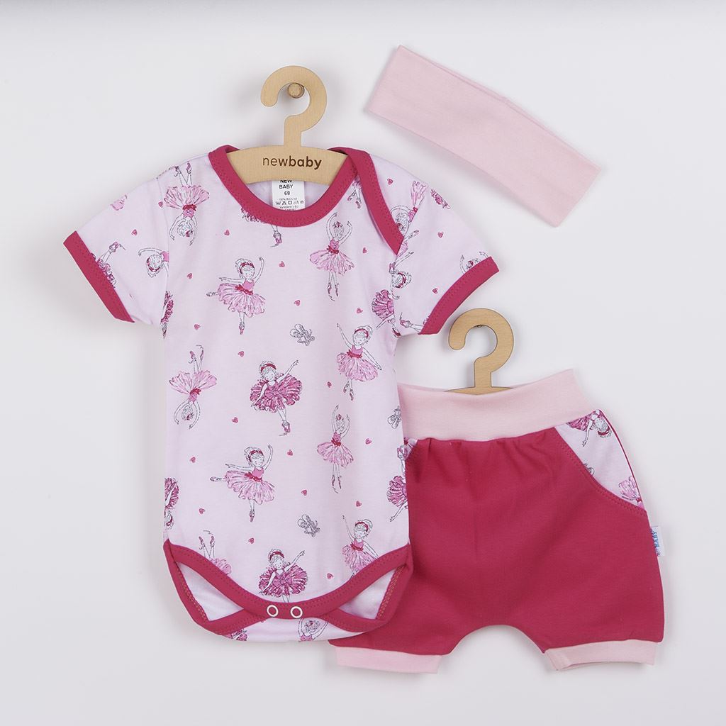 Beautiful, cute and very practical 3-piece girls' set from the Czech brand New Baby Perfect Summer. The set includes shorts, bodysuit and headband. The short sleeved body is decorated with a baby pattern. Around the neck, sleeves and legs there is a colourful trim. Practical stud fastening between the legs makes dressing and changing easier. Cute shorts have a wide elastic waistband that does not press on the baby's tummy. The legs have narrower elastic hems and the stylish but practical cut gives the shorts just the right amount of flair. The headband is stretchy, adjusts well, is very comfortable to wear and also holds well. The set is precisely and qualitatively sewn and is made of a very pleasant cotton material in which your little girl will feel very comfortable. Our summer playsuit is very practical for hot summer days. 100% cotton.