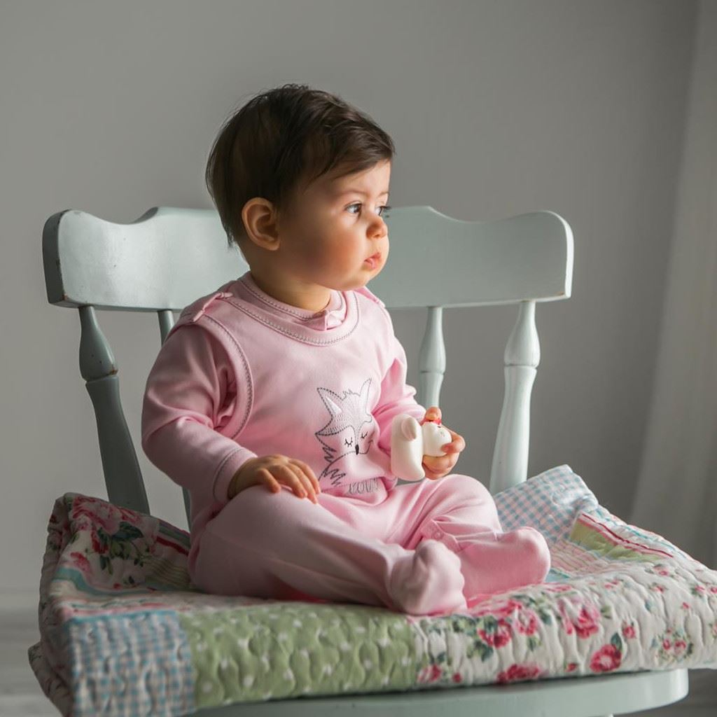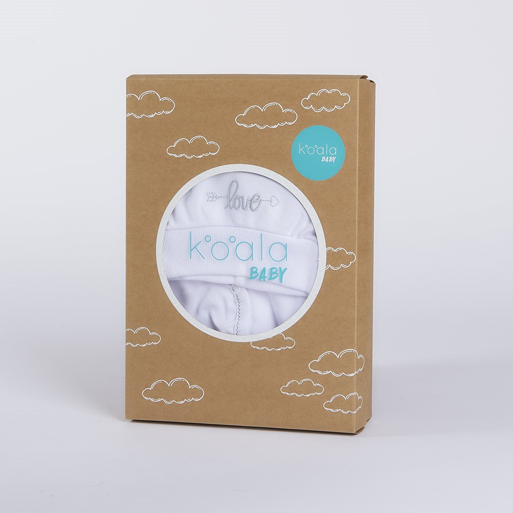 Beautiful cotton 4 piece Koala Fox Love baby set for babies. The baby kit is made of very nice, soft and high quality material that is suitable for babies and is suitable not only for the maternity ward. It includes a long sleeve bodysuit, onesie, jacket and cap. The bodysuit is full-zip and is decorated with a picture of a fox, the word love and piping. The onesie is decorated with a large cute fox picture, the name love and piping. Stud fastenings on the shoulder straps and between the legs make dressing and changing easy. The jacket is solid colour with beautiful trim around the arms. The fastening is full length. The cap is decorated with the word love and cute little ears. It is very practical and has a wide elasticated hem around the perimeter, which does not press on the baby's head and covers the baby's ears beautifully. The baby will feel very comfortable in this set, which is precisely and qualitatively sewn. The modern motif is designed with the baby's needs in mind and is also suitable as a nice gift. It comes in a practical Eco box. 100% cotton.