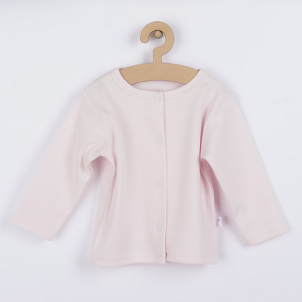 Beautiful cotton 4 piece Koala Moon baby set for babies. The baby set is made of very nice, soft and high quality material that is suitable for babies and is suitable not only for the maternity ward. It includes a long sleeve bodysuit, onesie, jacket and cap. The bodysuit is full-zip and is decorated with a picture of a sleeping marigold and lettering. The onesie has stud fastenings on the shoulder straps and between the legs and is decorated with a large picture of a sleeping moon and writing. The jacket is solid colour with a full-length studded fastening. The hat is decorated with a small picture of a marigold. It is very practical and covers the baby's ears beautifully. The baby will feel very comfortable in this set, which is precisely and qualitatively sewn. It is designed with the baby's needs in mind. 100% cotton.