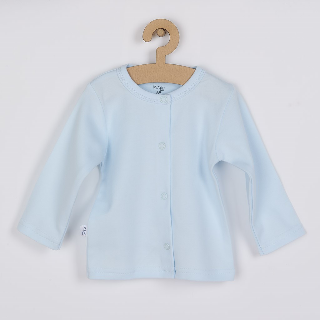 Beautiful cotton 4 piece Koala Moon baby set for babies. The baby set is made of very nice, soft and high quality material that is suitable for babies and is suitable not only for the maternity ward. It includes a long sleeve bodysuit, onesie, jacket and cap. The bodysuit is full-zip and is decorated with a picture of a sleeping marigold and lettering. The onesie has stud fastenings on the shoulder straps and between the legs and is decorated with a large picture of a sleeping moon and writing. The jacket is solid colour with a full-length studded fastening. The hat is decorated with a small picture of a marigold. It is very practical and covers the baby's ears beautifully. The baby will feel very comfortable in this set, which is precisely and qualitatively sewn. It is designed with the baby's needs in mind. 100% cotton.