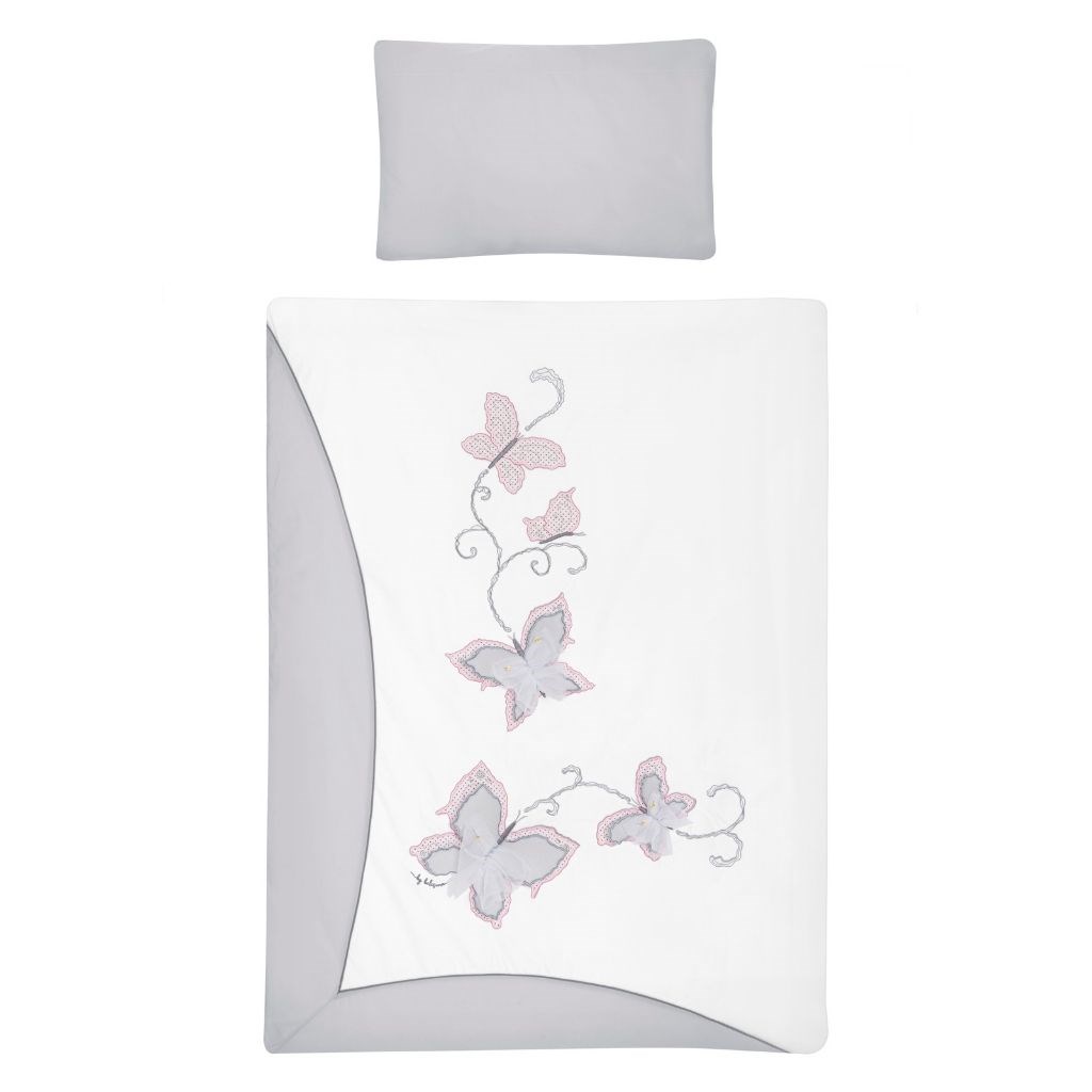 Beautiful Belisima Butterfly 5 piece cotton crib set for babies. It is made of soft, pleasant material. The set includes a pillowcase approx. 40x60 cm, a duvet cover approx. 90x120 cm, a mantle approx. 180 cm, a pillow and a duvet. Material 100% cotton.