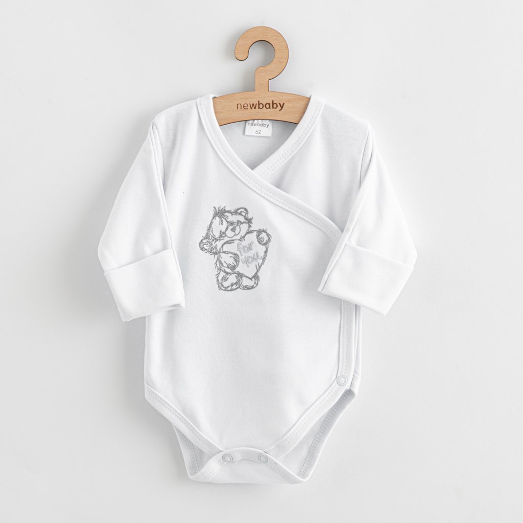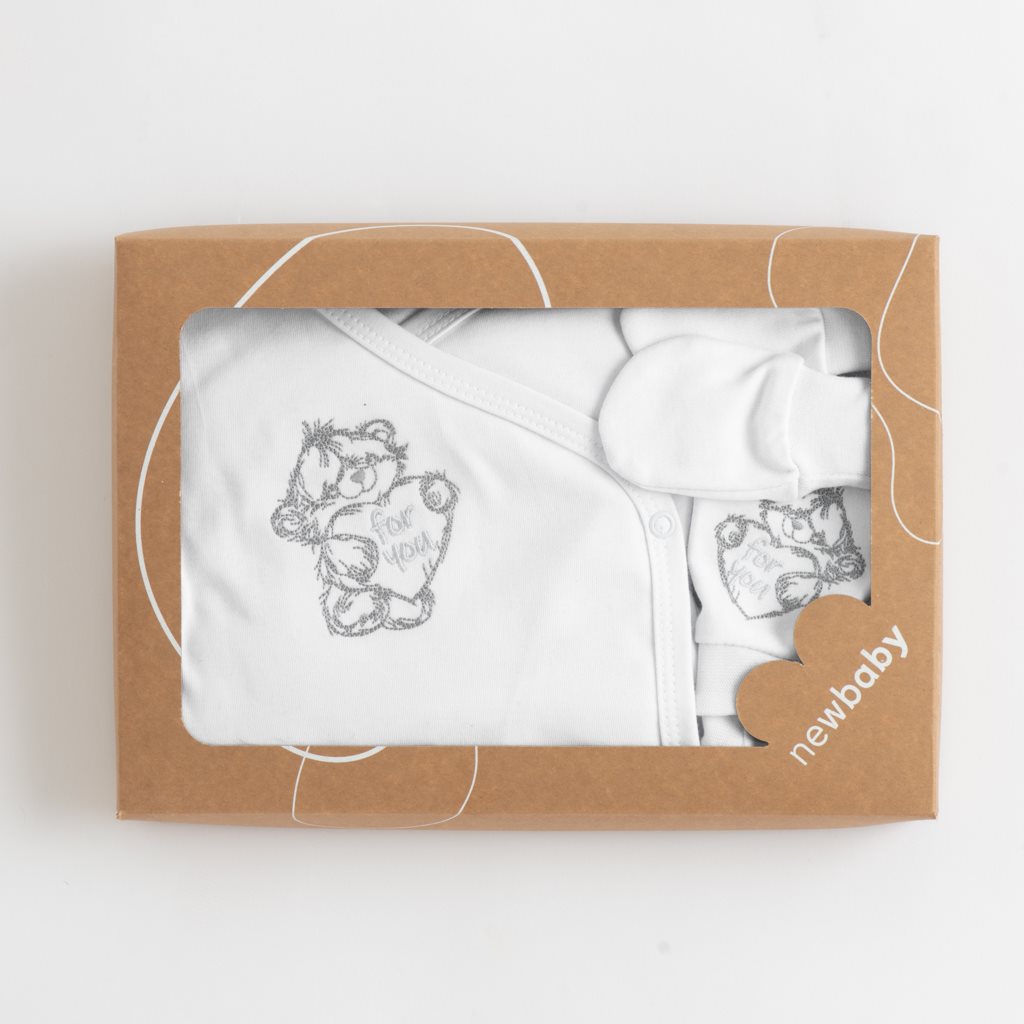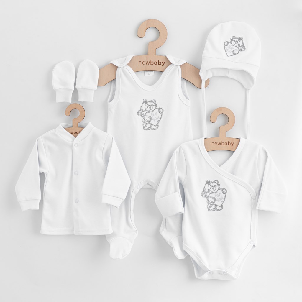 Cute 5 piece baby set by Czech brand New Baby Classic for babies. The set is made of very nice, soft and high quality material that is suitable for babies and is suitable not only for the maternity ward. It includes a full-sleeved body with long sleeves, onesie, jacket, cap and gloves. The bodysuit has a full length side fastening and studs between the legs. The onesies have stud fastenings on the shoulder straps and between the legs to make dressing and changing easier. The jacket has a full length stud fastening. The cap is on a tie and holds nicely on the baby's head. The sleeves have a wider pull-on cuff. The set is interesting with beautiful embroidery. It is designed with the baby's needs in mind and is also suitable as a nice gift. It comes in a practical Eco box. 100% cotton.