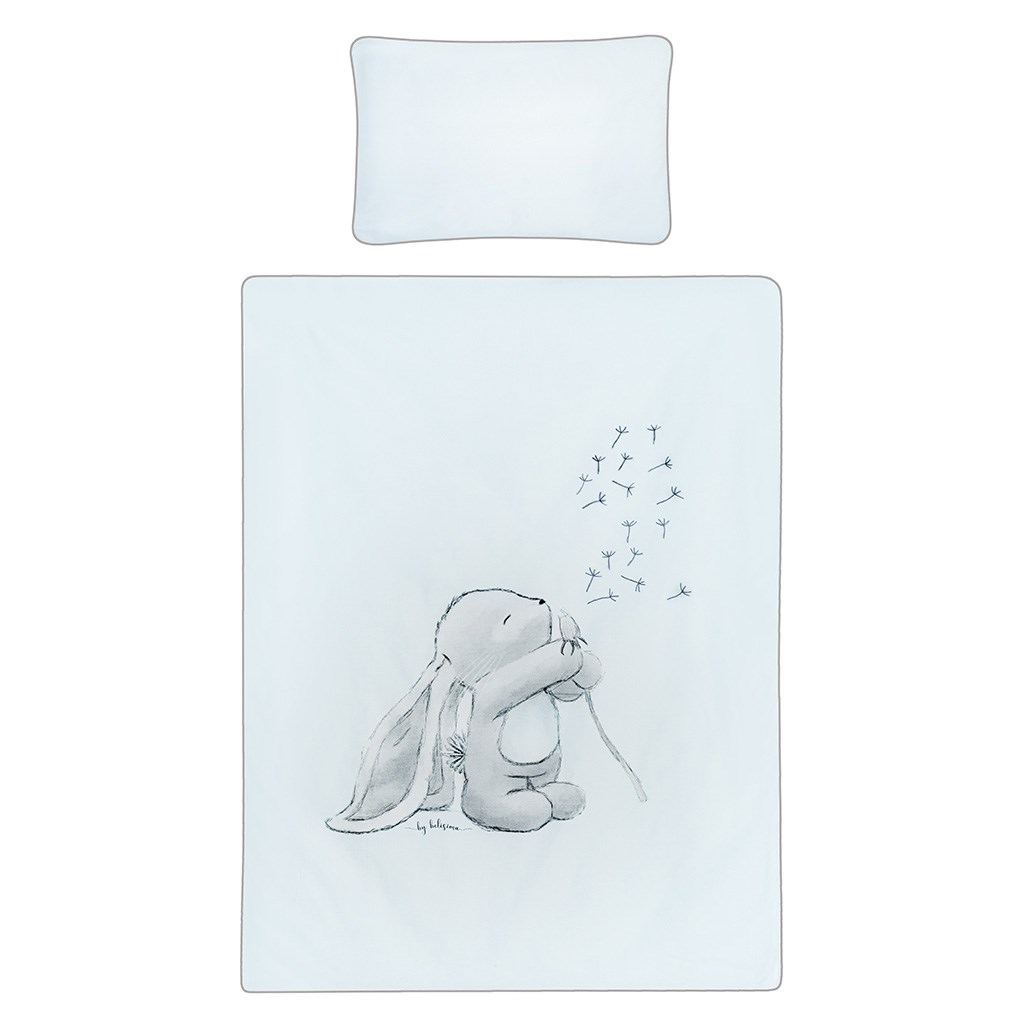 Beautiful Belisima ANDRE 6 piece cotton crib set for babies. It is made of soft, pleasant material. The set includes a pillowcase approx. 40x60 cm, a duvet cover approx. 90x120 cm, a mantle approx. 180 cm, a pillow and a duvet, a canopy. The material is 100% cotton.