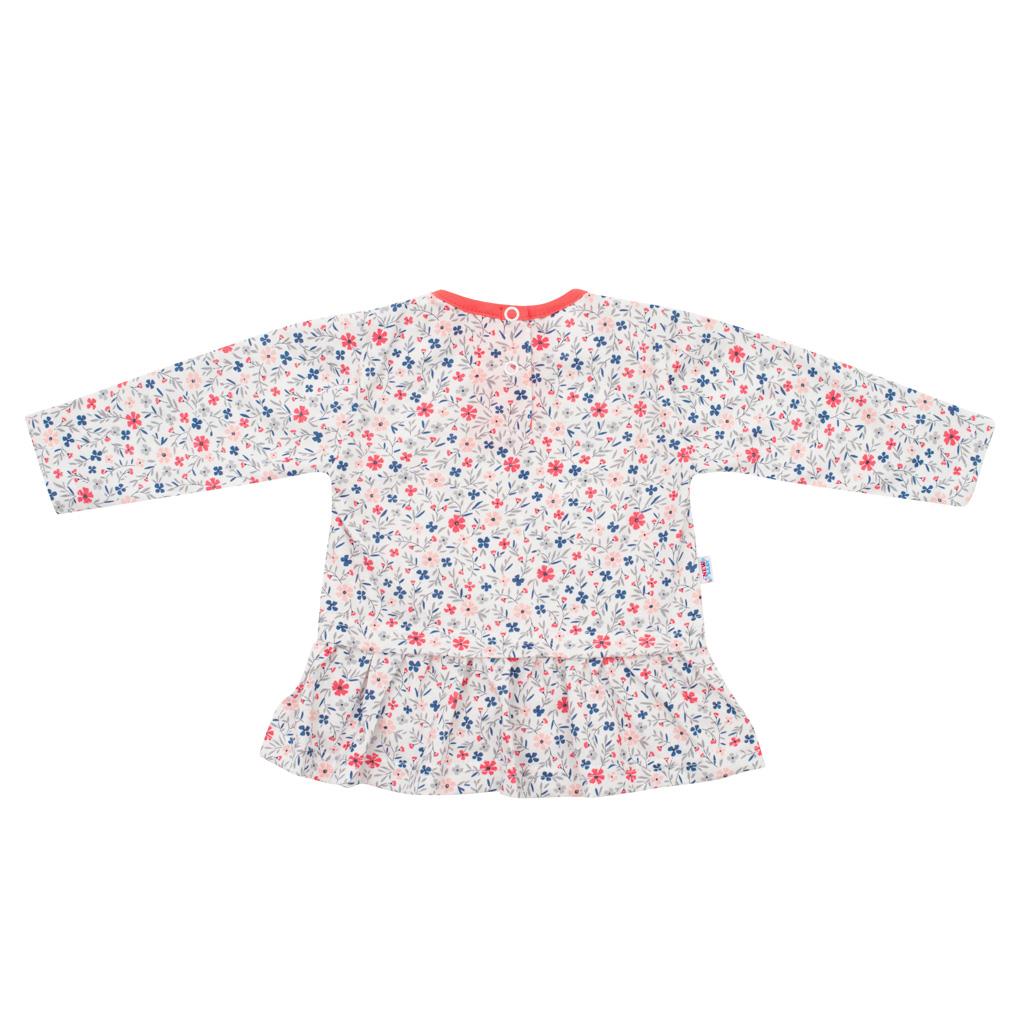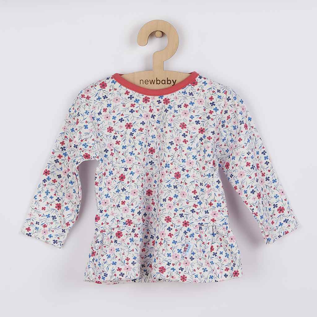 Imaginative and cute baby blouse with long sleeves from the Czech brand New Baby For Girls. The A-line blouse is printed with flowers, has a beautiful ruched back at the bottom and a colourful trim under the neck. It is very precisely and well made and has a fantastic play of colours and flowers. The 2 stud fastening at the back makes dressing easier. Modern cut, flowers and beautiful colours. All of this is fulfilled by our blouse For Girls, which is an essential part of a girl's outfit. Suitable for year-round wear. 100% cotton.