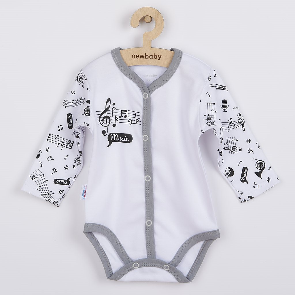 Original, playful and at the same time cheerful cotton full-zip baby bodysuit New Baby Music for babies. The bodysuit is monochrome with an original picture of music notes and the word Music. The sleeves are printed with a picture of sheet music and musical instruments. Full-length and studded fastening between the legs makes it easy to dress and change the baby. The soft, comfortable and high quality material will guarantee your baby's satisfaction. Our original and cheerful body is suitable for boys and girls. 100% cotton. Dimensions: circumference around the chest approx. 44 cm, sleeve length approx. 21 cm, total length approx. 37 cm.