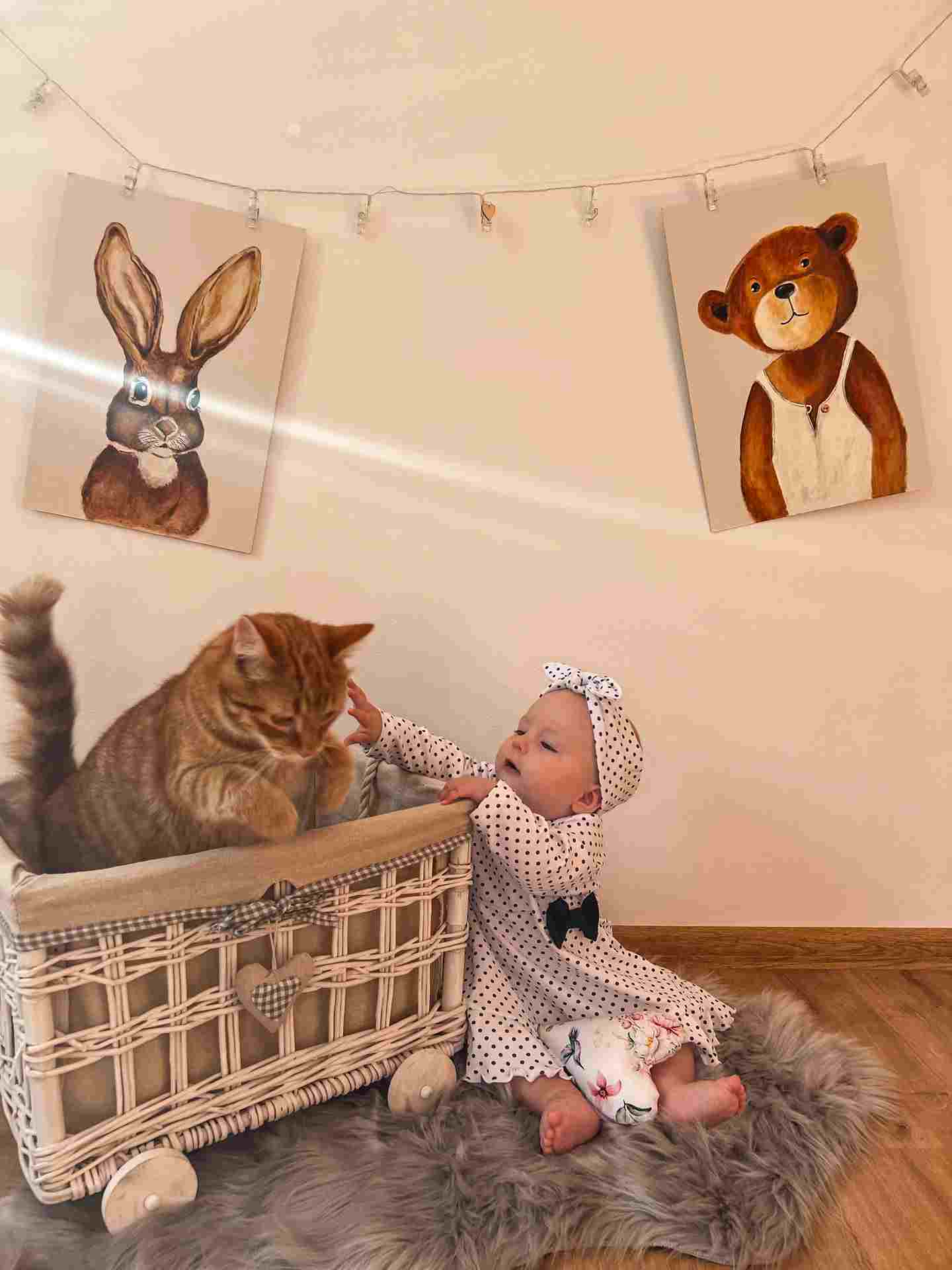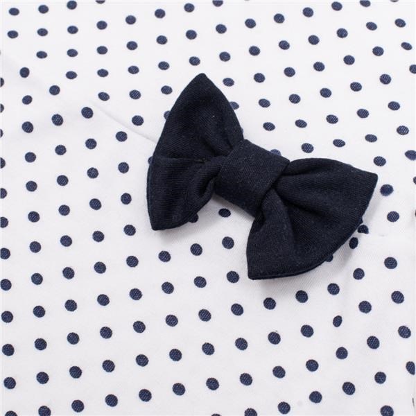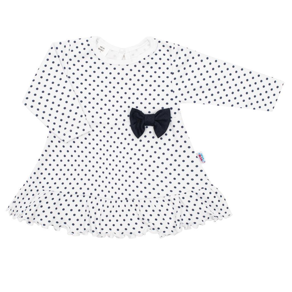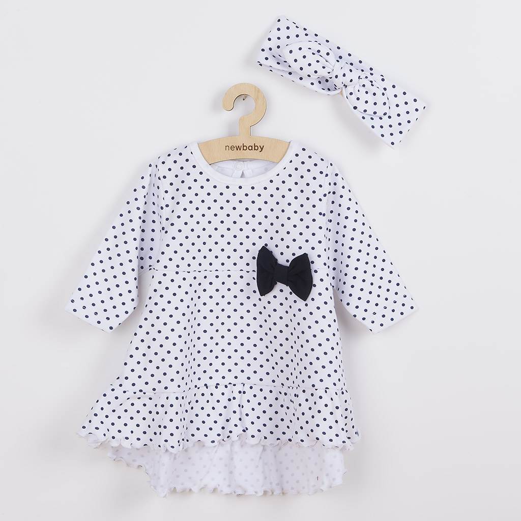 Beautiful cotton baby dress with headband by Czech brand New Baby Teresa for all little babies. Long sleeve dress with polka dots and a cute ruffle, is sewn in the shape of the letter A. A stud fastening at the back makes dressing easy. The dress has a very comfortable and high quality material that is suitable for babies. Beautiful cotton girls headband, will delight all little showgirls. The headband is elastic, adjusts well. 100% cotton.