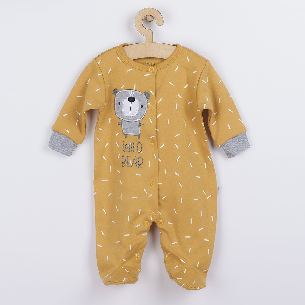 Imaginative infant jumpsuit Koala Wild Bear. The jumpsuit is decorated with a beautiful embroidery of a teddy bear. Practical stud fastenings along the entire length and between the legs make dressing and changing very easy. Overalls are an important piece of clothing for babies. During any movement, the baby's bottom is always covered. It is made of very comfortable and soft material, which is very important for the baby's satisfaction. 100% cotton.