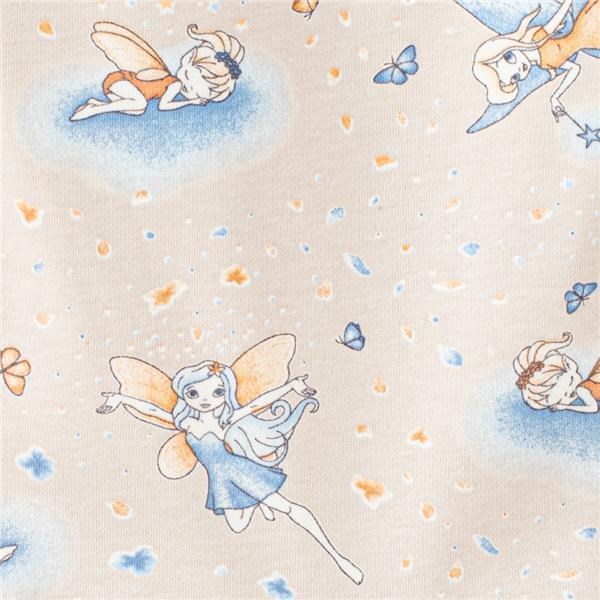 Beautiful cotton baby t-shirt by Czech brand New Baby Fairy. T-shirt with short sleeves printed with fairies. Without fastening, over the head. The T-shirt is made with the needs of small children in mind with very comfortable material. 100% cotton. The Fairy collection includes: short-sleeved T-shirt, long-sleeved bodysuit, half-socks, sweatpants and cap and shorts.