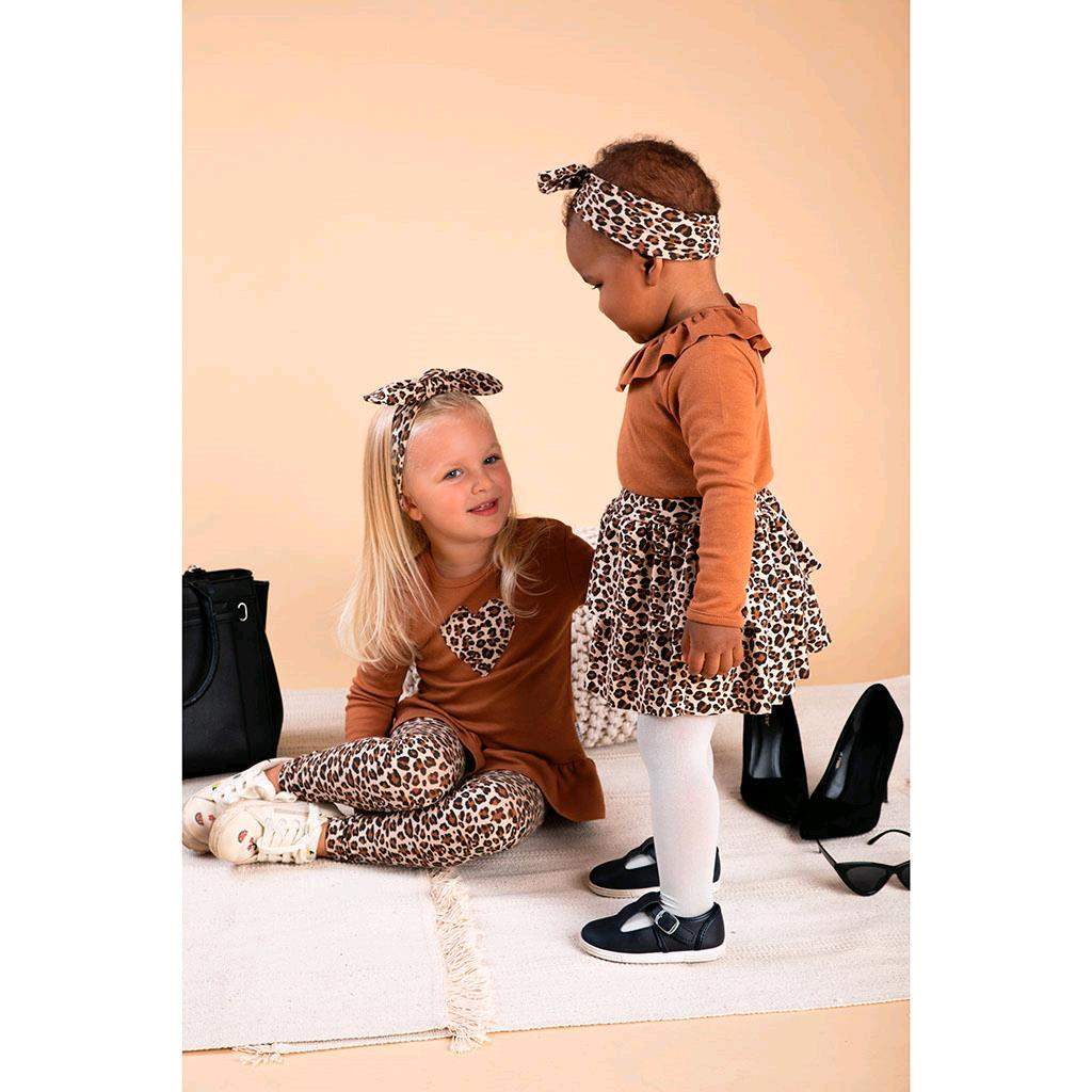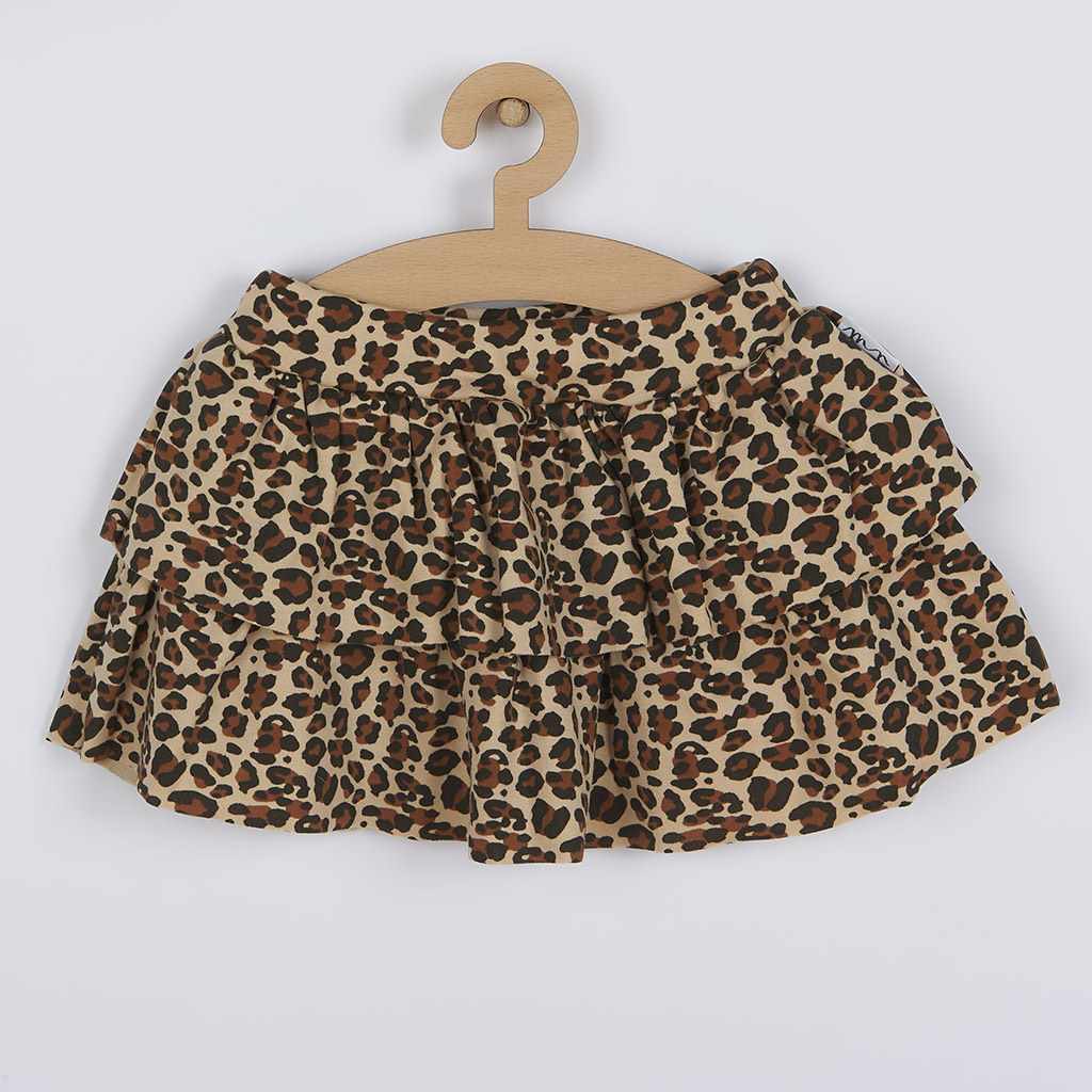 Stylish ruffle cotton baby skirt Nicol Mia. The skirt is decorated with a leopard fur pattern. There is a sewn-in elastic at the waist to keep the garment in place but not pressing on the tummy. The loose fit does not restrict the baby's movements and ensures comfort when worn. The skirt can be freely combined with other garments from the Mia collection to create unique styles. Ideal for spring and summer. Mia is a breathtaking new collection designed with the needs of our little ones in mind. 100% cotton.