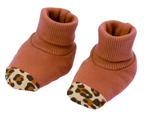 Beautiful Nicol Mia cotton baby booties with a drawstring cuff for your baby. The caps are solid colour with a leopard fur pattern to protect the feet from the cold. Thanks to the soft and high-quality material, your baby will feel very comfortable in them. Mia is a new breathtaking collection designed with the needs of our little ones in mind. 95% cotton, 5% elastane. The product is not designed for walking.