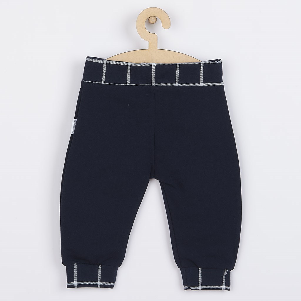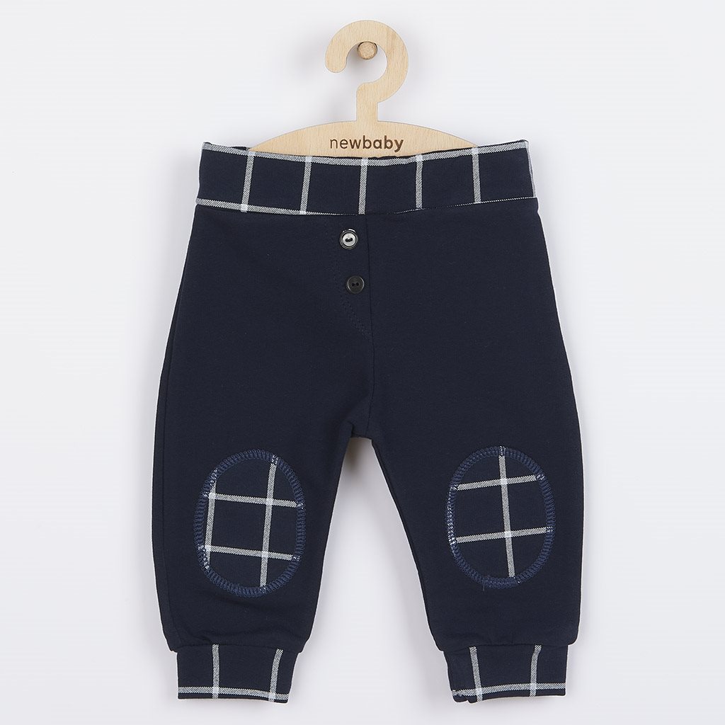 Modern and practical sweatpants from the Czech brand New Baby Cool. The sweatpants have a wider waistband with an elastic band, a wider hem on the legs and snazzy patches on the knees. The hems and patches are made of modern checkered fabric. The sweatpants are without fastening. The sewn-on buttons are only imitation. Comfort during wearing is ensured by the quality material. Thanks to the nice cut, the sweatpants can easily replace trousers or jeans. Customer satisfaction is very important to New Baby and that is why we offer you our quality Cool collection. 95% cotton, 5% elastane.