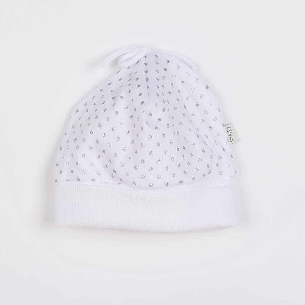 Adorable and soft cotton infant jumpsuit with Koala Angel cap. The jumpsuit has modern side stud fastenings all along the length and between the legs. It is suitable for babies from birth due to its softness and softness. The jumpsuit is decorated with a picture of a teddy bear. The cap with a wider brim covers the ears beautifully and is printed with polka dots. The jumpsuit with cap is made of pleasant and high-quality cotton material, in which your baby will feel comfortable. 100% cotton.