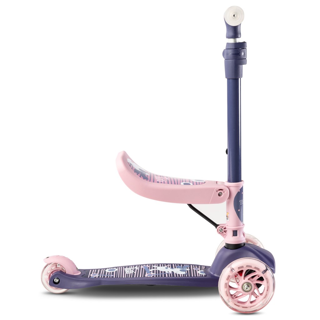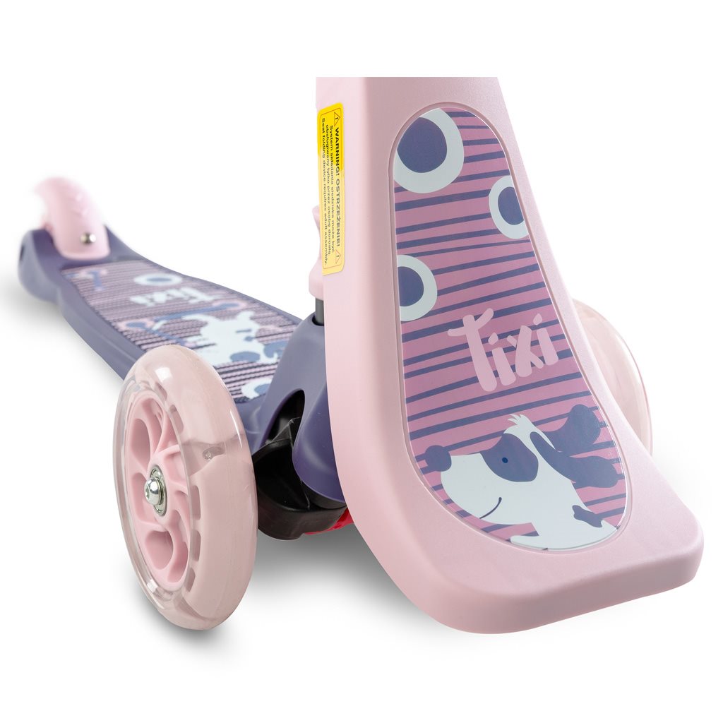 TIXI is a modern three-wheeled scooter, which, thanks to its design, develops the physical fitness and balance of children from 3 to 12 years old with a weight of up to 50kg. It is equipped with a height-adjustable, stable handle and a folding seat that allows a child weighing up to 20kg to rest. In addition, the scooter has dynamo-powered, light-up rubber wheels for added comfort and safety.