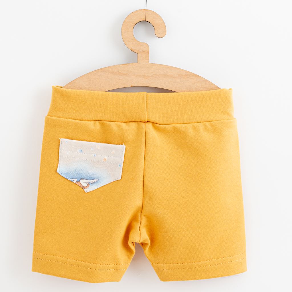 Baby shorts by Czech brand New Baby Fairy. Comfortable sweat shorts are solid colour with a pocket on the back. They have a wider waist with elastic band. 95% cotton, 5% elastane. The Fairy collection includes: short-sleeved T-shirt, long-sleeved bodysuit, half-socks, sweatpants, cap and shorts.