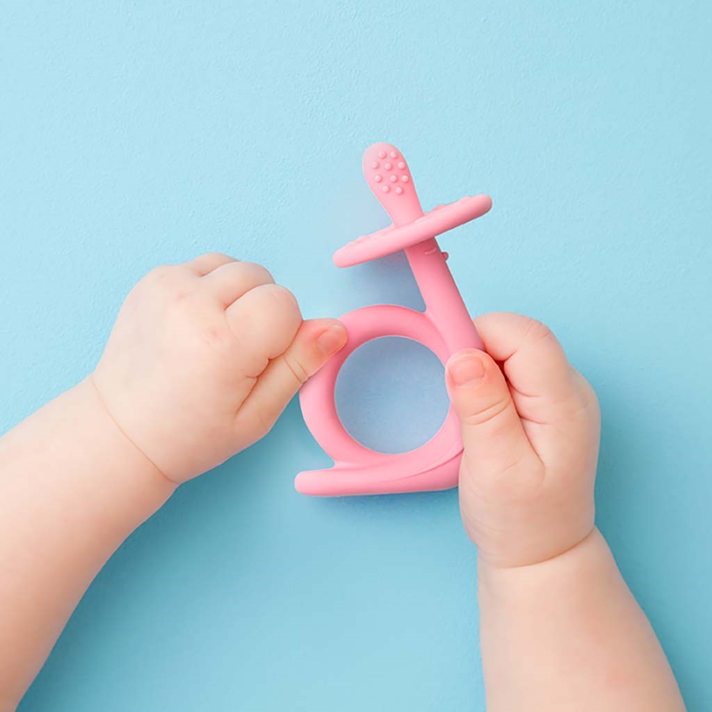 Silicone teething toothbrush, thanks to its shape and material, helps to soothe pain and gently massage the gums during the period of tooth growth. It is made of high quality, soft and durable material that can be easily washed. The special shape makes it easy for baby to hold. and prevents it from being swallowed. It is suitable for cooling in the refrigerator. The teething toothbrush also acts as a first toothbrush.
