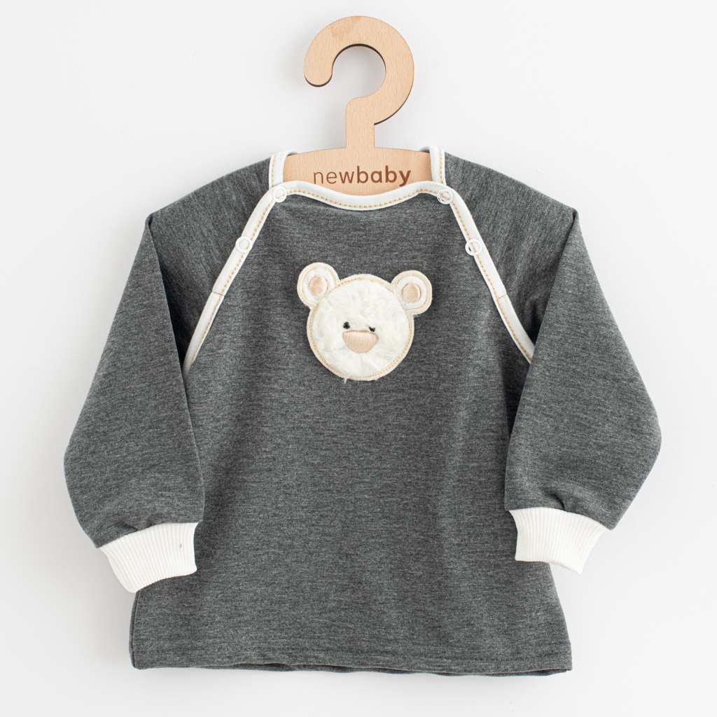 Stylish 2-piece set by Czech brand New Baby Sebastian. The set includes sweatpants and a sweatshirt. The sweatshirt is decorated with a picture of a teddy bear. The sweatshirt has a stud fastening under the shoulder. Sweatpants have a wider hem on the legs and waist. You can use the set perfectly not only in the pram, car seat, but also for walks or as comfortable clothes for home. Perfect and stylish set for boys' wardrobe. 95% cotton, 45% elastane.