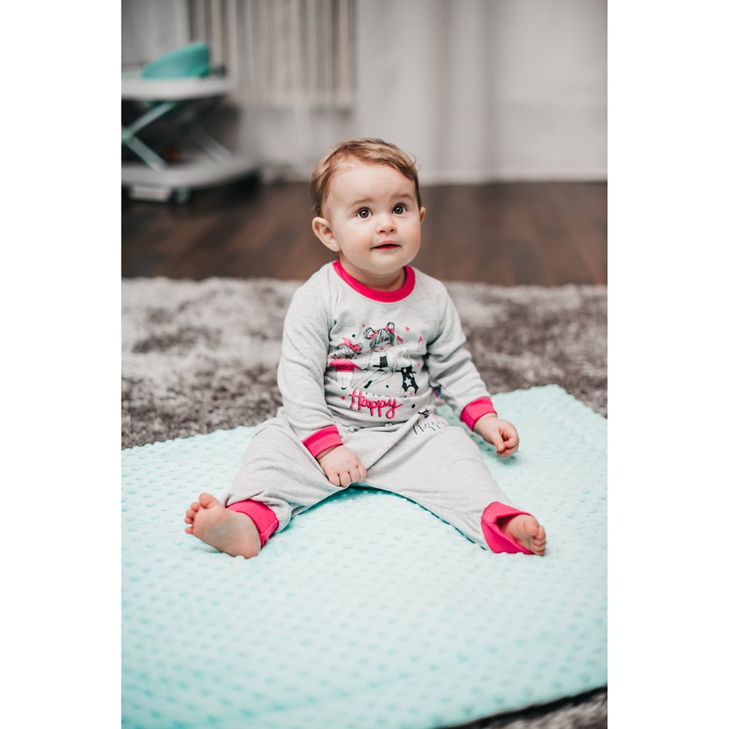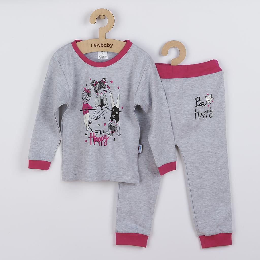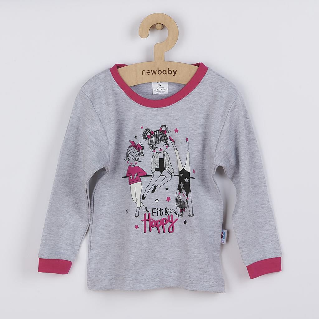 Stylish baby girl's sweatpants and t-shirt from Czech brand New Baby. The t-shirt has a colourful elasticated hem around the neck, which makes it easy to put over baby's head. It is decorated with a picture of little girls, the Fit and Happy sign and the very popular glitter. The leggings have a wide coloured hem on the legs, an elasticated waistband and a stylish dropped seat which gives the kit just the right amount of sizzle. The sweatpants are decorated with the word Be Happy with beautiful glitter. The set is suitable for the pram, car seat or as a comfortable outfit for home. It has versatile use. The set is soft, light, comfortable. The modern look and cut of the set will suit your baby very well. 100% cotton.