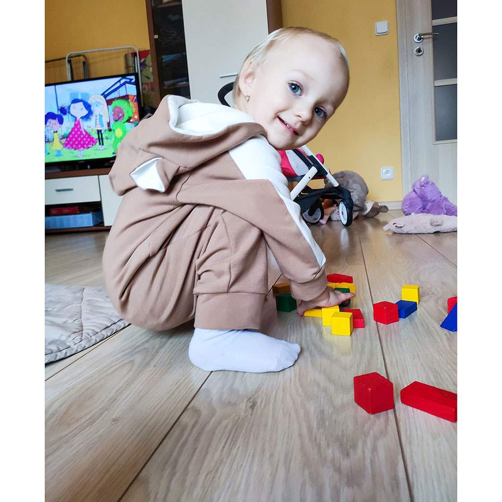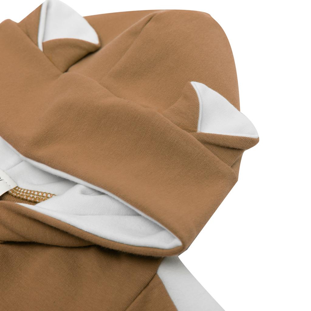 Modern stylish and practical overalls with hood and ears from the Czech brand New Baby The Best. The jumpsuit has a full-length zip fastening and elasticated hem on the sleeves and legs. The hood is lined with a lining. The jumpsuit is made of comfortable thermal fabric. Customer satisfaction is very important to New Baby and that is why we offer you a jumpsuit from the New Baby The Best collection. 98% cotton, 2% elastane.