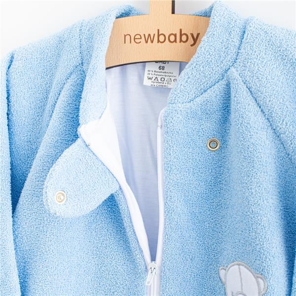Practical and warm terry baby sleeping bag New Baby for babies in a beautiful pastel colour with a sewn picture of a teddy bear. The sleeping bag is suitable for babies from birth for its softness and softness. The whole sleeping bag is lined with cotton. By choosing the right sleeping bag you will avoid overheating or cold for your baby. You'll prolong your baby's undisturbed sleeping because he won't wake up because of a kicked, cold or stray blanket. Moms don't have to worry about covering up, and with small babies, you don't have to worry about covering their heads. The sleeping bag is suitable for the cot or pram. The practical full-length zip fastening makes dressing and changing very easy. The sleeping bag is made of very pleasant, soft and high quality material, which is important for the baby's satisfaction. 80% cotton, 20% polyester. 100% cotton.