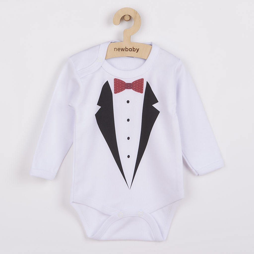 Original New Baby long sleeve cotton baby bodysuit with tuxedo image. The colours used for printing are certified and suitable for babies. It is made of a comfortable and high quality material, in which your baby will feel comfortable. The bodysuit has stud fastenings on the shoulder and between the legs, which makes dressing and changing easier. Let your baby stand out in the original body. 100% cotton. Dimensions: circumference around the chest approx. 50 cm, sleeve length approx. 26 cm, total length approx. 42 cm.