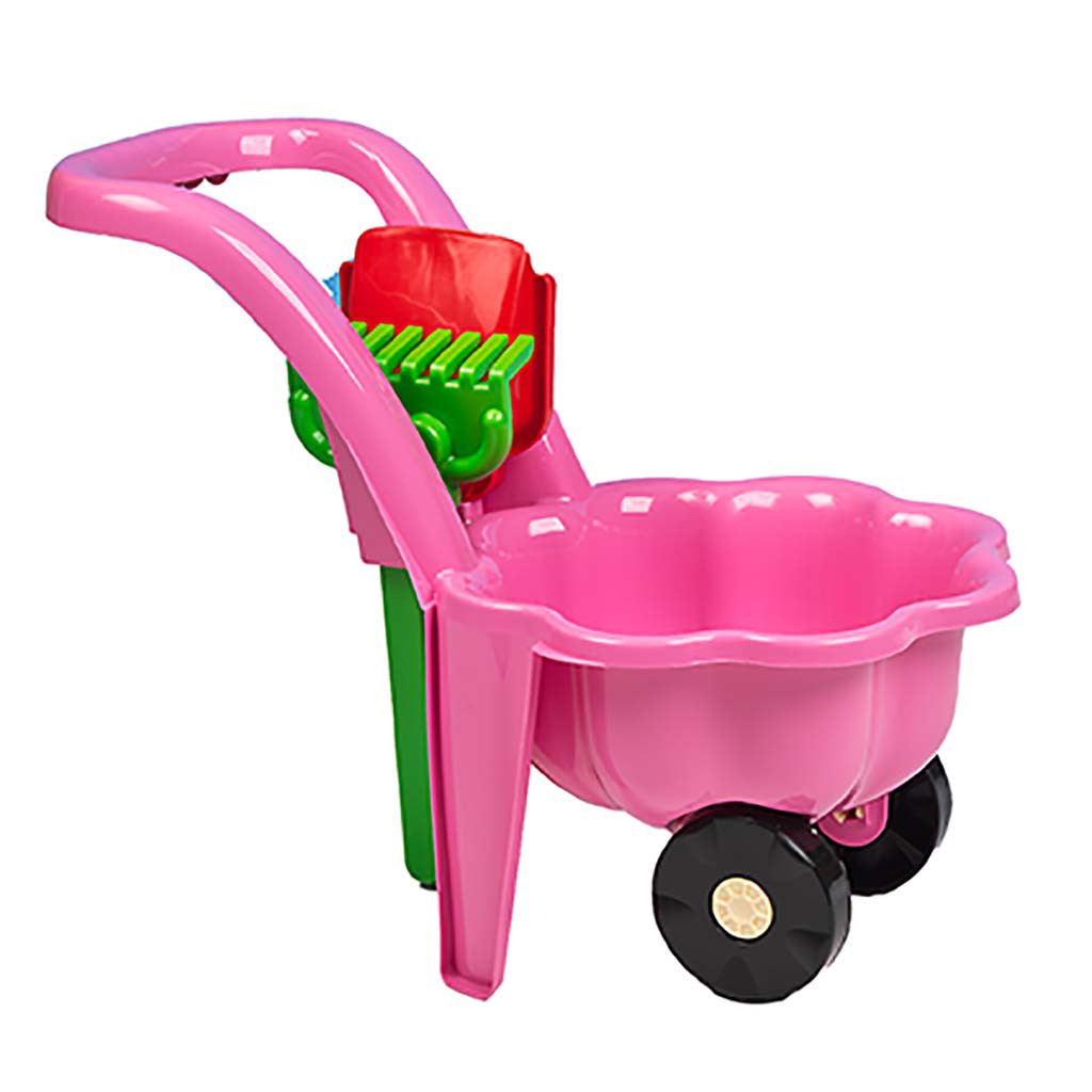 Children's garden wheel with trowel and rake BAYO Daisy pink