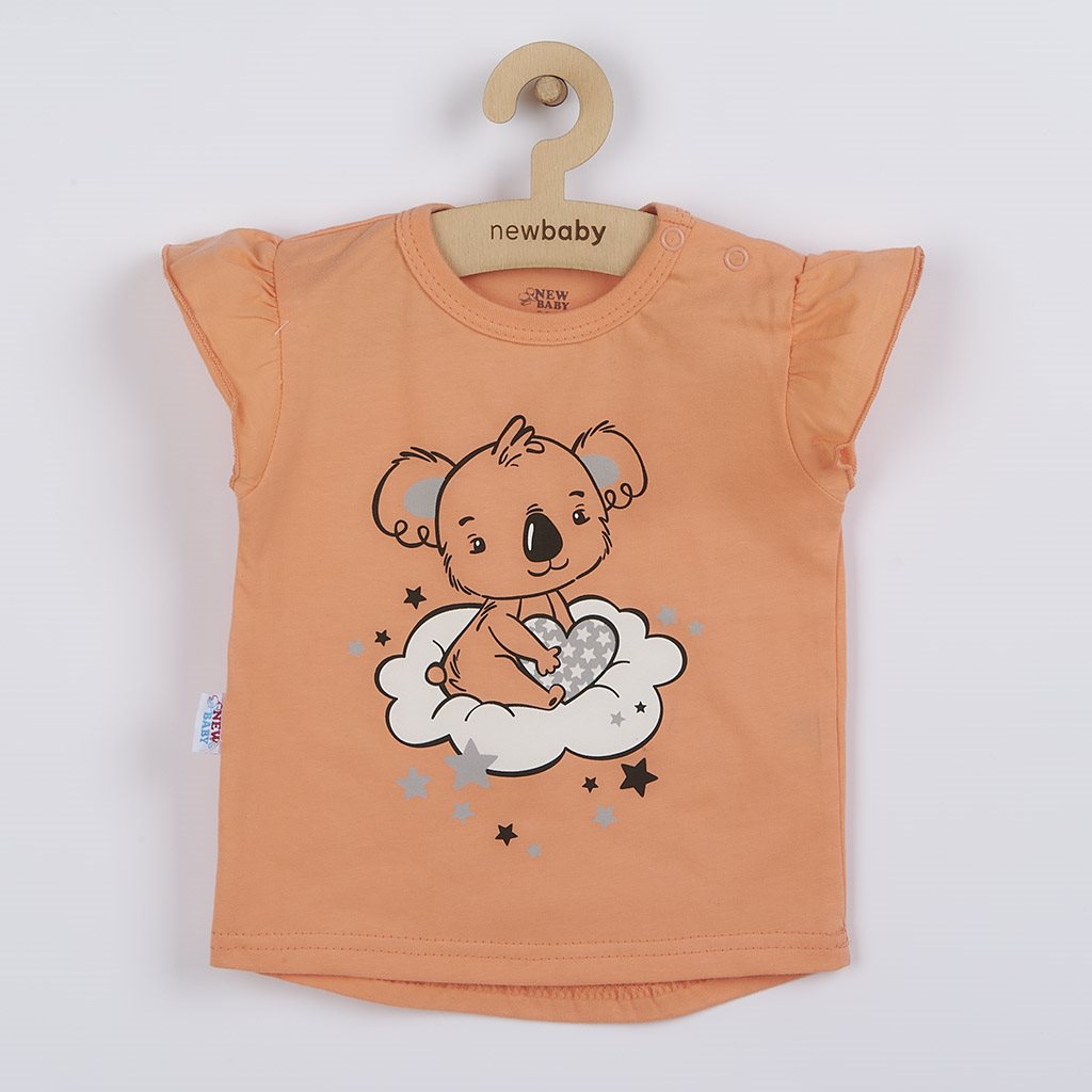 Cute girls cotton pyjamas from Czech brand New Baby Dream with teddy bear. The summer pyjamas consist of a short sleeved t-shirt and shorts. T-shirt with ruffles decorated on the front with a cute picture of a teddy bear on a cloud and stars. It is fastened with studs on the shoulder strap. The shorts are printed all over with teddy bears and have cute ruffles on the legs. The waistband is wider with an elastic band that doesn't press on baby's tummy. Customer satisfaction is very important to New Baby and that is why we offer you our quality pyjamas that will make your baby's sleeping experience more pleasant. Also suitable as baby summer clothes. 100% cotton.
