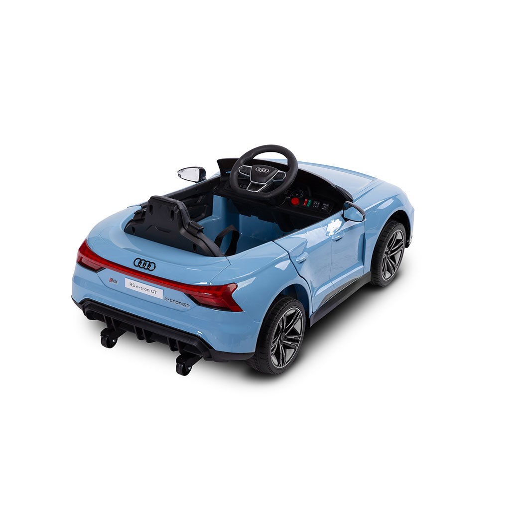 Audi RS Etron GT by Toyz is a unique electric car for kids. Thanks to the Audi license, the design elements of the ""adult"" model have been faithfully reproduced. Worthy of note are the rear light bar ending in a ""V"", the front lights with the light signature in the shape of the letter ""X"" and the entire body with the dynamic proportions of the GT inspired by sports car dynamics. As befits a true Audi sports car, it has all-wheel drive. Comfort and safety features include: shock absorbers, EVA foam wheels, eco-leather seats, three-point seat belts, slow start and automatic brakes. The rechargeable car also has the following features for parents: remote control and retractable wheels for easy carrying.