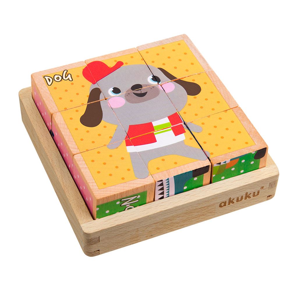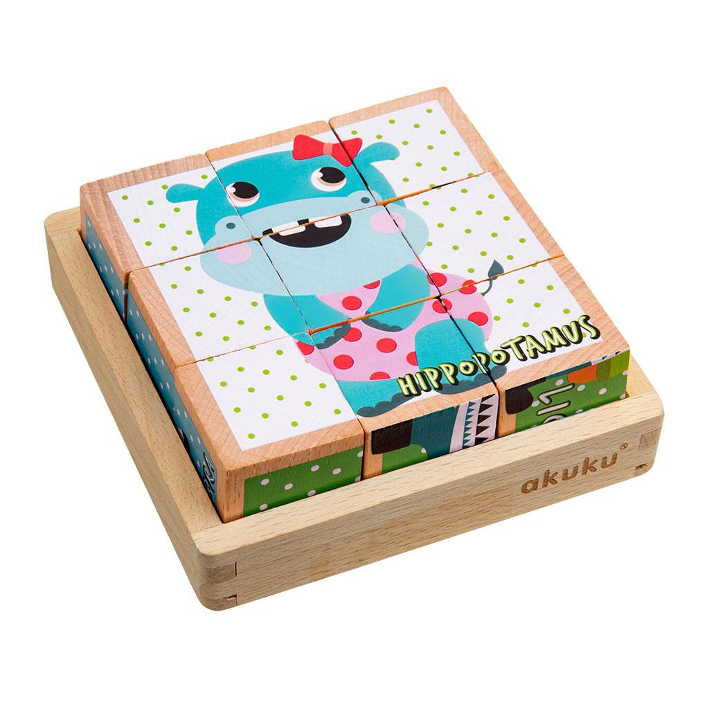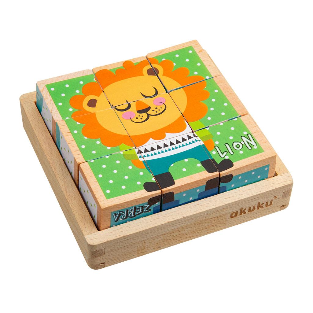 Foldable educational wooden blocks in a box Akuku ZOO 9 pcs