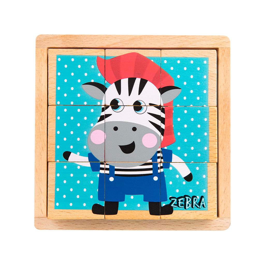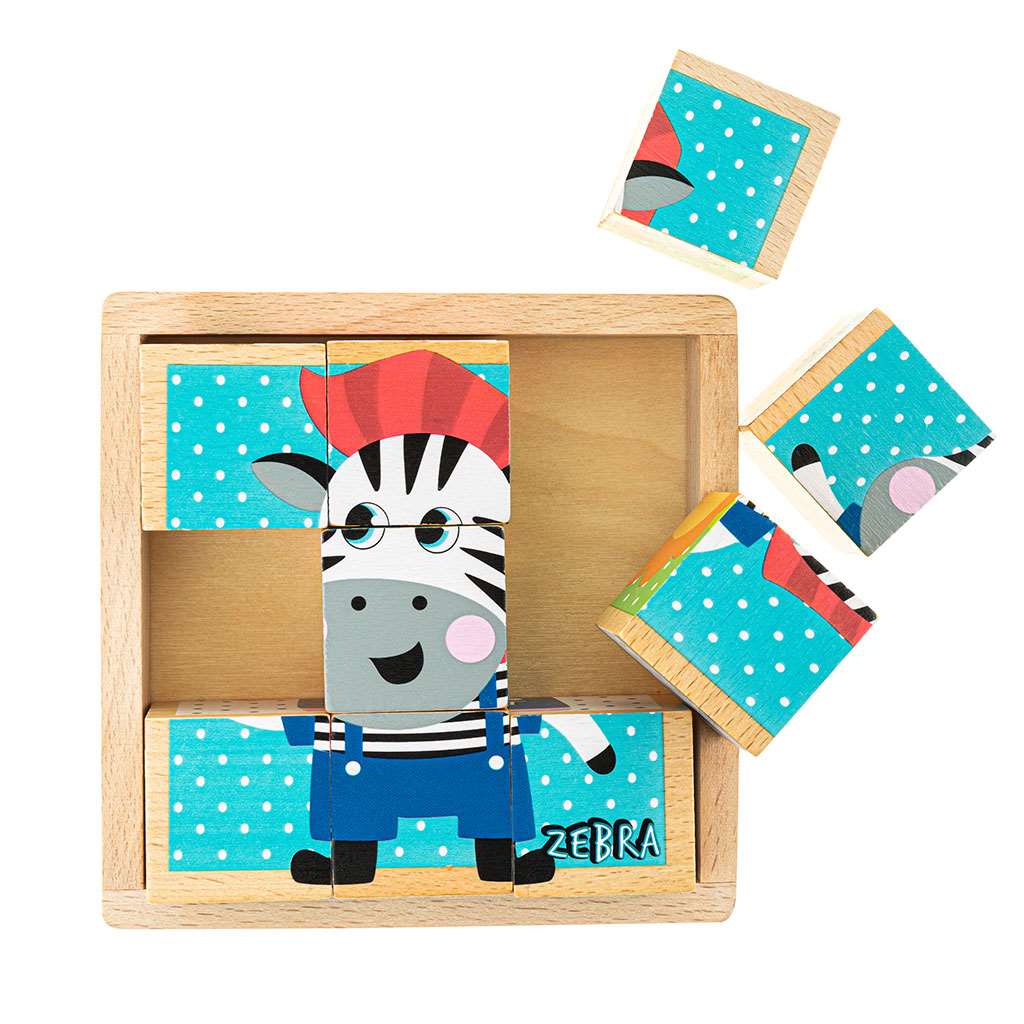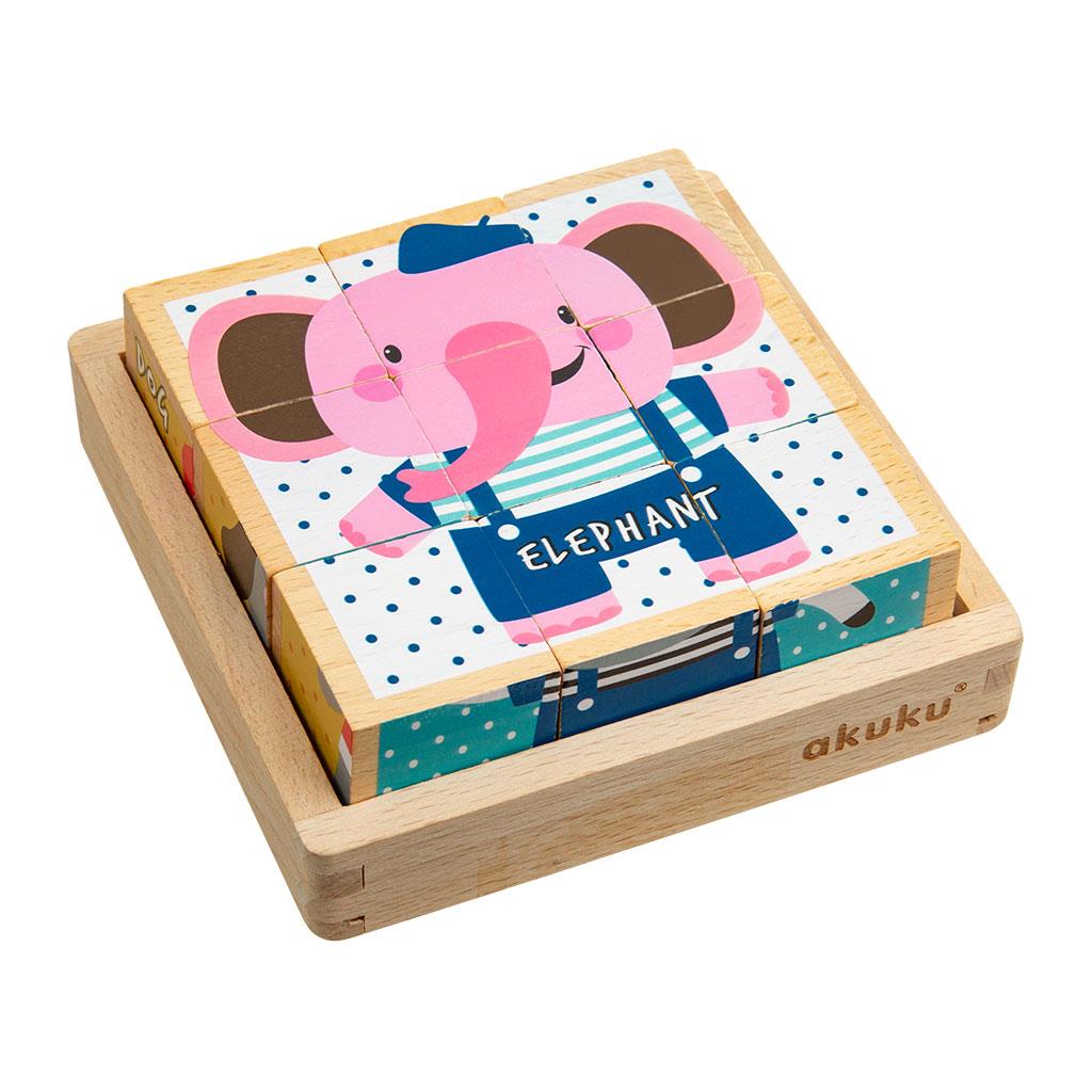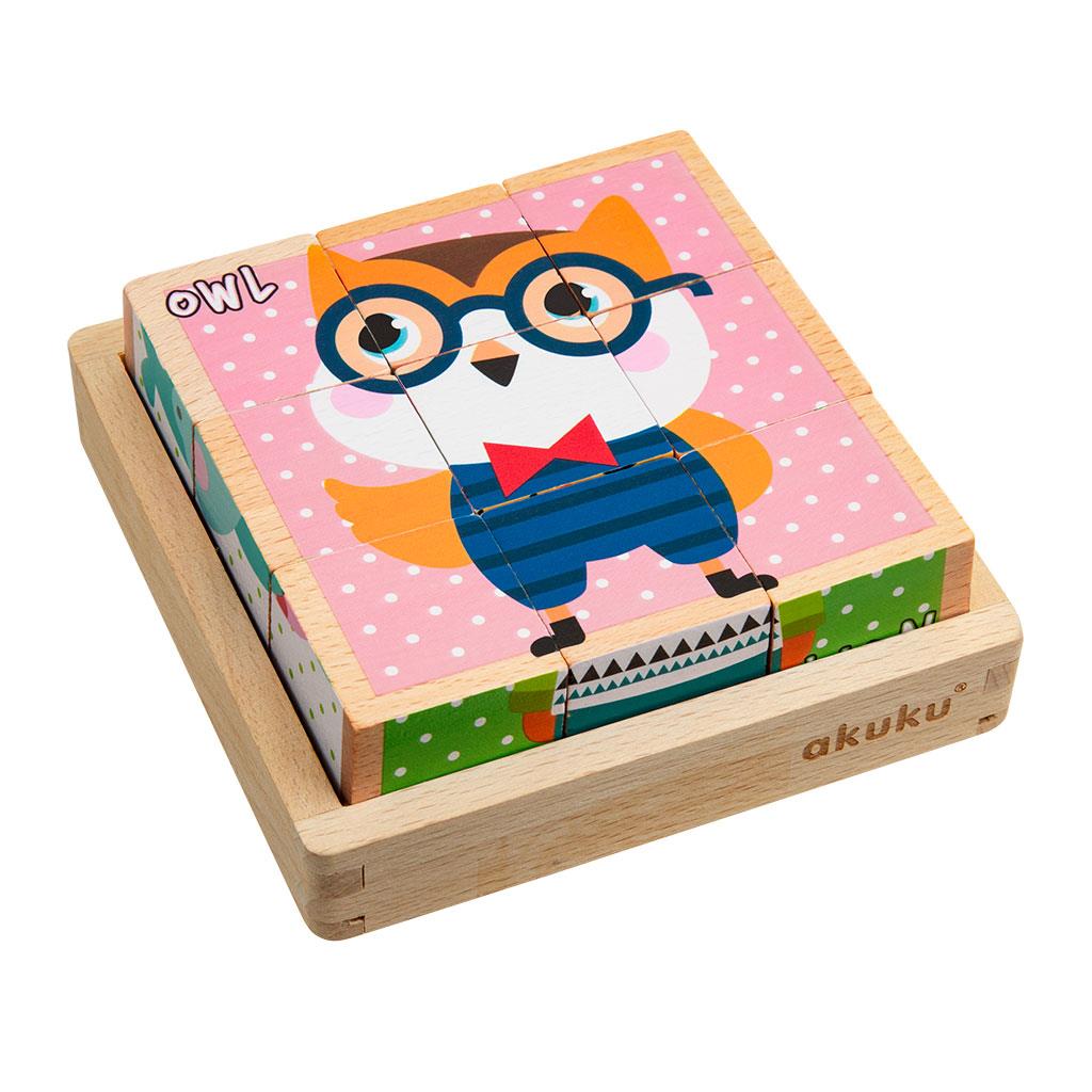 Foldable educational wooden blocks in a box Akuku ZOO 9 pcs