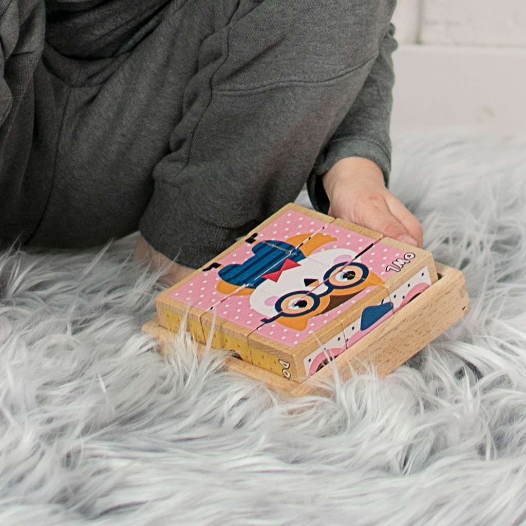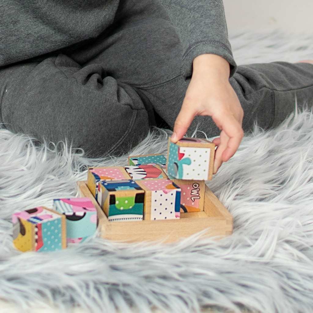 Develops the child's visual and motor skills. They stimulate creativity, give the opportunity to create different shapes. Wooden blocks are ideal for the smallest children. The child recognizes shapes, colors and different animals. The wooden box makes it easy to store, carry and store the cubes.
