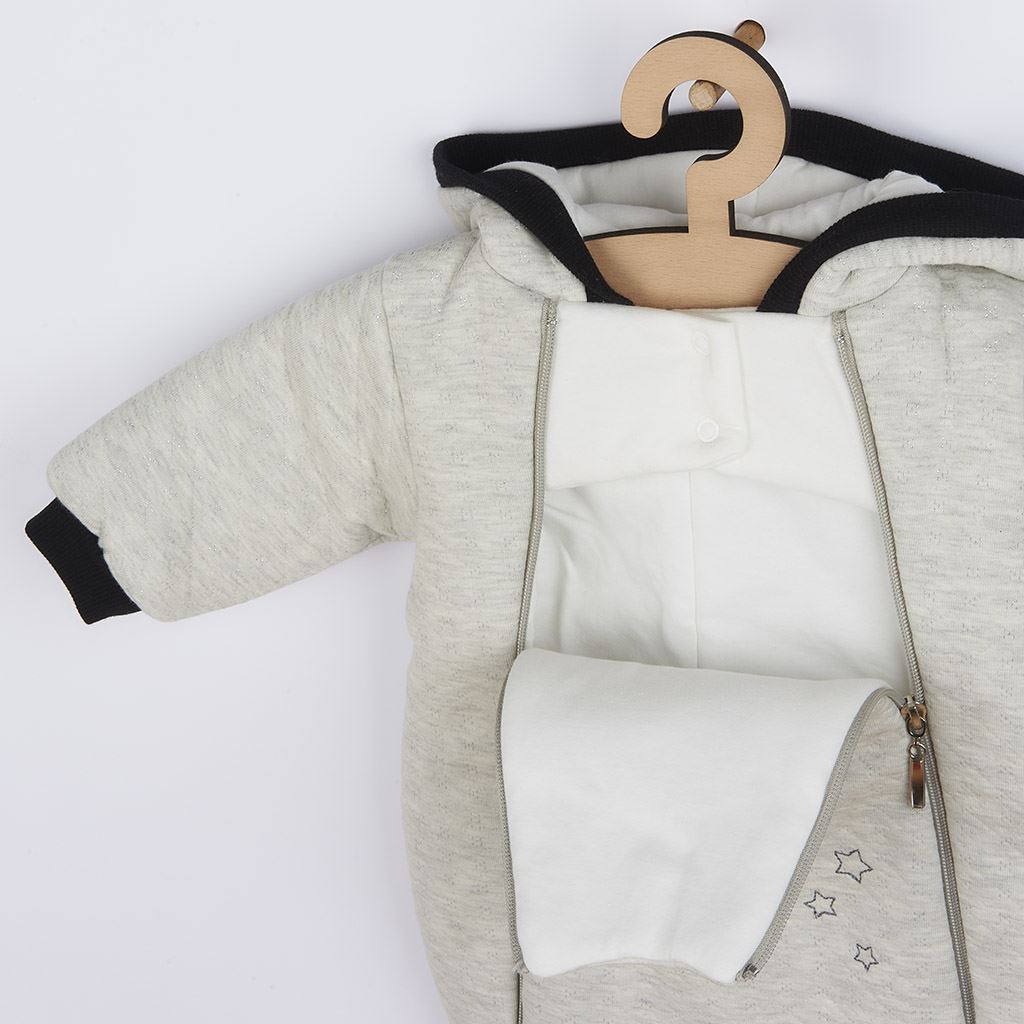 Stylish and practical baby winter jumpsuit with hood Koala Star Vibes. The winter insulated jumpsuit is made of high quality material that will keep your baby warm and comfortable. 2 zippers on the sides make dressing and changing easy. The jumpsuit is fully lined with cotton lining. The lining is an important part of the garments. It increases the durability of the garment and determines how the baby will feel in the clothes. The lining is smooth, breathable, pleasant to the touch and at the same time increases the comfort of wearing. In addition, the jumpsuit is filled with anti-allergic fibre, which increases warmth. Ideal for babies for winter and autumn. We put emphasis on quality and therefore, thanks to the quality material, your baby will feel very comfortable in the jumpsuit. Composition: top layer 77% cotton, 20% polyester, 3% lurex fiber, lining 100% cotton, filling anti-allergic fiber-100% polyester-120g/m2.