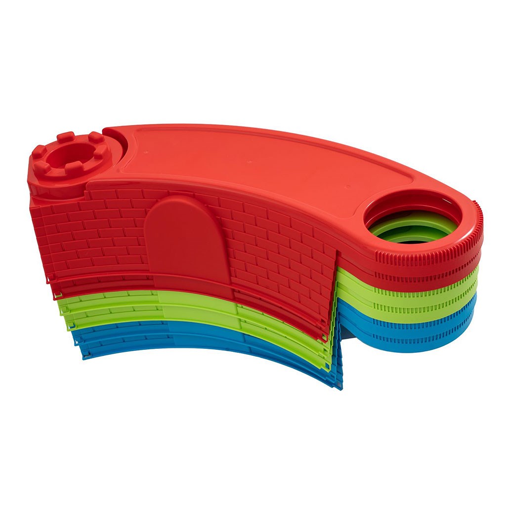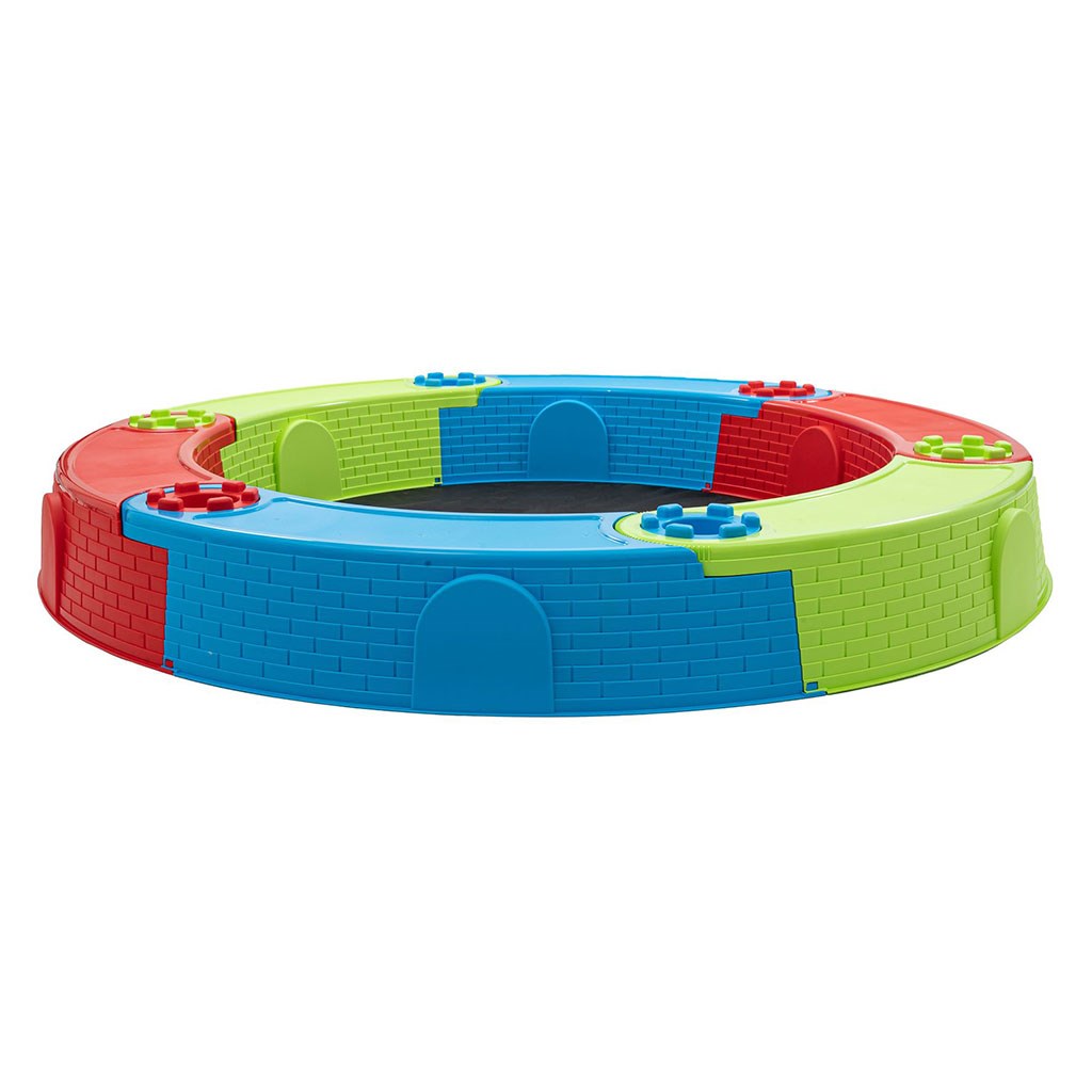 The large folding sandpit is made of certified, durable and high-quality plastic. It consists of 6 modules and a non-woven fabric on which the sandbox is placed. Simply connect the six modules to assemble the sandbox and then place it on a flat surface. It can be filled with sand, but can also serve as a dry pool with balls. In addition, water can be poured into the depressions at the top of the sandpit.