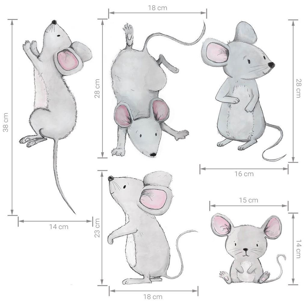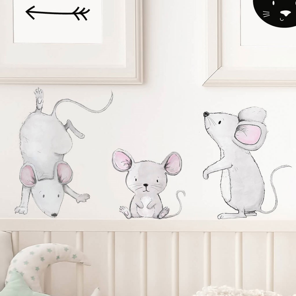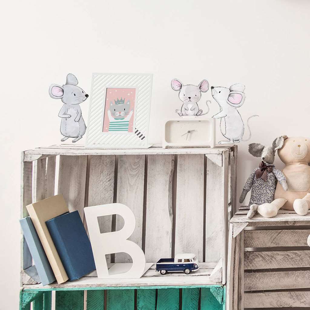 Beautiful wall sticker Mouse family. Pastel mouse family includes five extraordinary and cute animals - mouse mommy, mouse daddy, mouse baby, mouse uncle and mouse aunt. Together they make an amazing team that you can assemble as you wish - together or individually. The mice are specially cut to the outline, which greatly simplifies application on the chosen surface and gives them an extremely realistic appearance. If you have a cat in the house, be careful as it might start to hunt! The sticker is secured with a special matt laminate, which protects it from scratches during everyday use and also makes it easier to stick - the film is thicker and easier to transfer to the wall. The placement of the individual parts on the wall is possible according to your imagination. If you are looking for the perfect way to brighten up your child's room, our wall stickers are the right choice. Order them today and make your child happy.