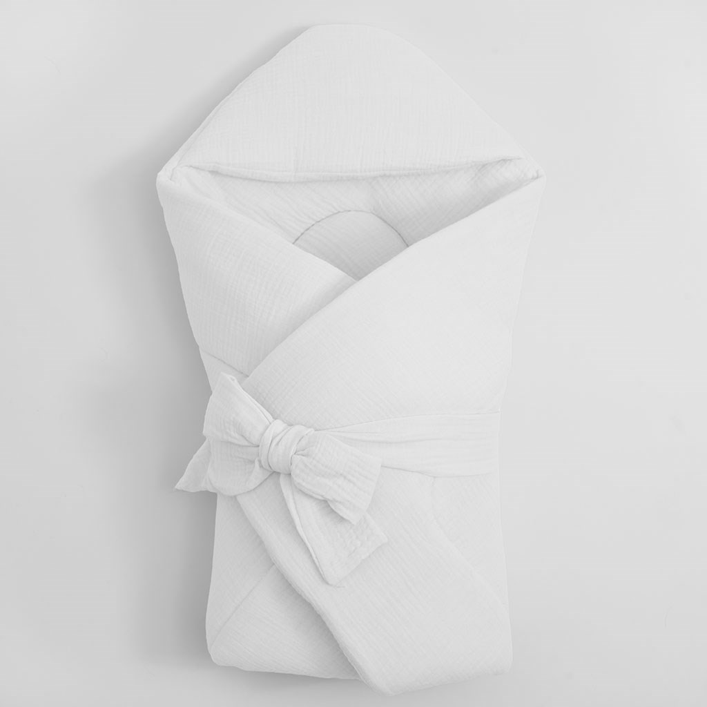 Muslin wrap with hood New Baby white