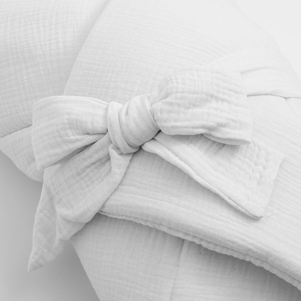 The muslin wrap is made of double gauze of the highest quality. Thanks to the bow,it can be easily tied and the hood protects the baby against the wind and provides him with warmth and comfort. The wrap is made of light, airy and breathable muslin, which has thermoregulating properties and absorbs and wicks away moisture very well.