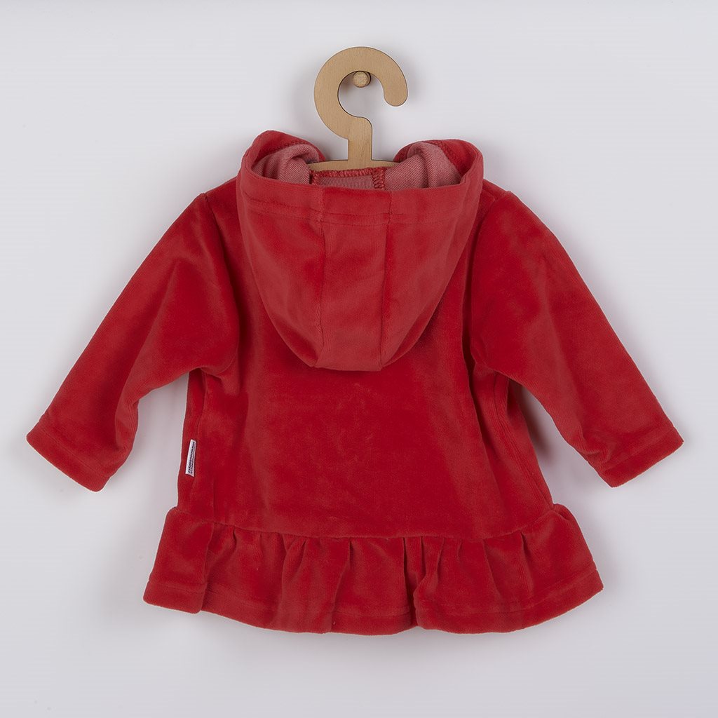 Stylish baby hoodie with hood of Czech brand New Baby Baby. The sweatshirt has a full length zip fastening and is finished with a cute frill. The sweatshirt is longer and thus perfectly replaces a thinner jacket or sweater. Customer satisfaction is very important for New Baby and that is why the sweatshirt is made of very pleasant material in which your baby will feel very comfortable. The sweatshirt combined with leggings from our range will serve as a beautiful set for home and walks. Fantasy in dressing knows no bounds and it is up to you how you can match the sweatshirt with New Baby clothes. 80% cotton, 20% polyester.