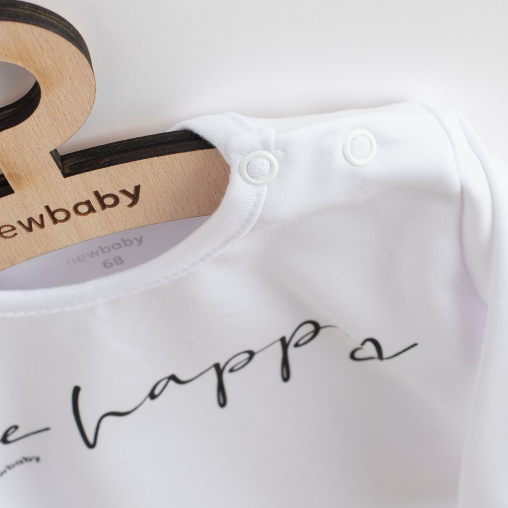 Stylish 2-piece set from the Czech brand New Baby Be Happy for babies. The set is made of very pleasant, soft and high quality material that is suitable for babies. It includes a t-shirt and sweatpants. Cotton T-shirt with long sleeves decorated with a print with the word be happy. Easy to put on over the head. Stud fastening on shoulder strap. The sweatpants have a wider waistband and legs. The baby will feel very comfortable in this set, which is precisely and qualitatively sewn. Composition: sweatpants: sweat fabric 96 cotton, 4% elastane. t-shirt: 100% cotton.