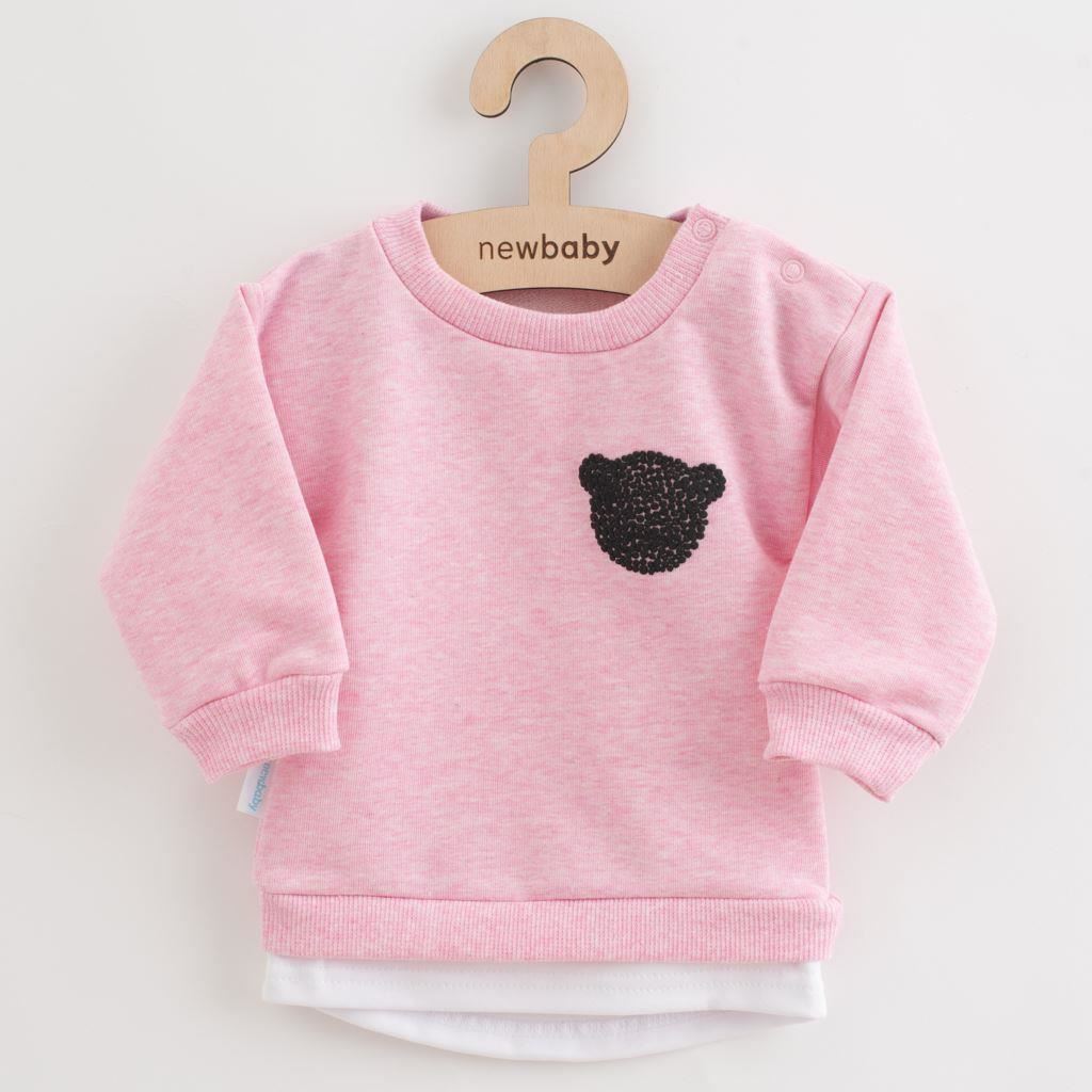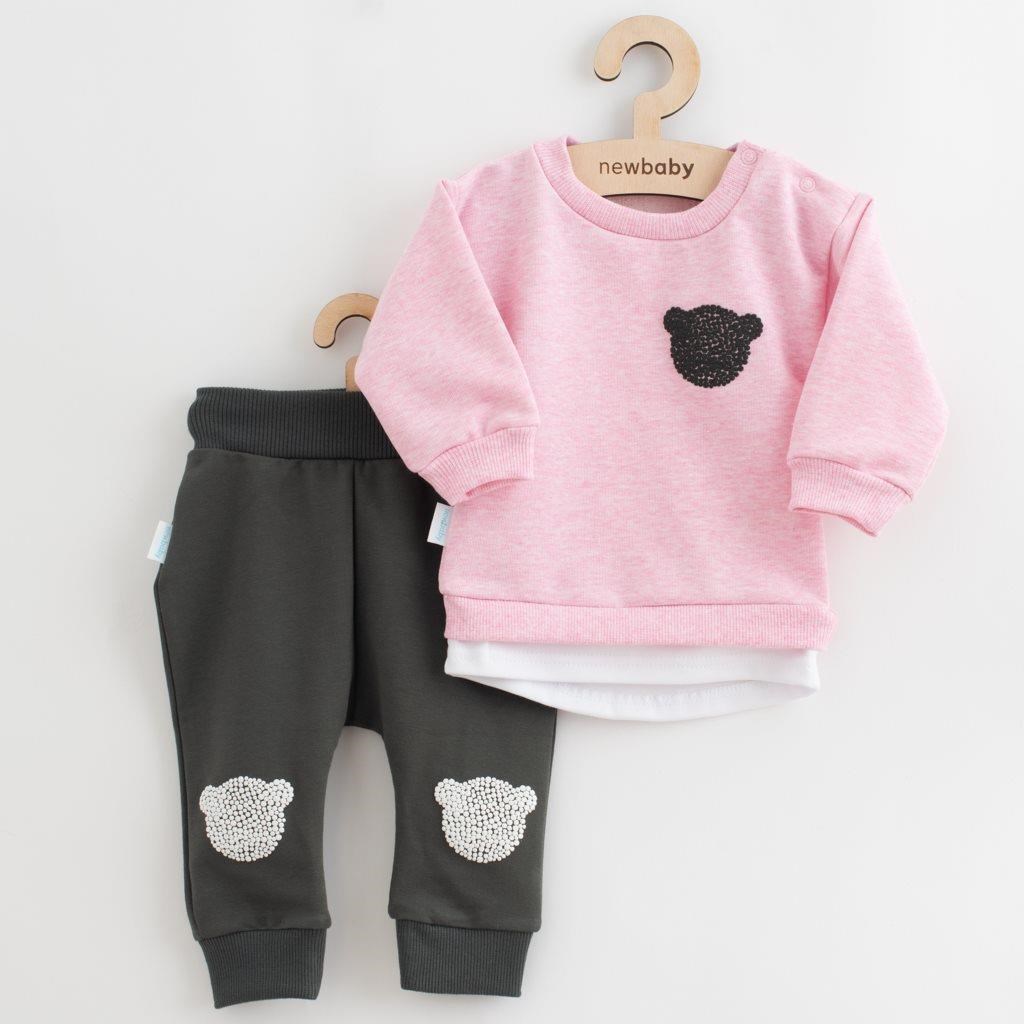 Stylish 2-piece New Baby Brave bear baby set. The set consists of a t-shirt and sweatpants. The long-sleeved T-shirt with a stud fastening on the shoulder is made with a comfortable sweat fabric. It is decorated with an interesting 3D picture of a teddy bear. The t-shirt has a cotton insert at the bottom, which gives a snazzy look. The sweatpants with an elasticated waistband and legs are made with comfortable sweat fabric. The knees feature an ABS print in the shape of a teddy bear. It protects the child's knees when climbing. 96% cotton, 4% elastane.