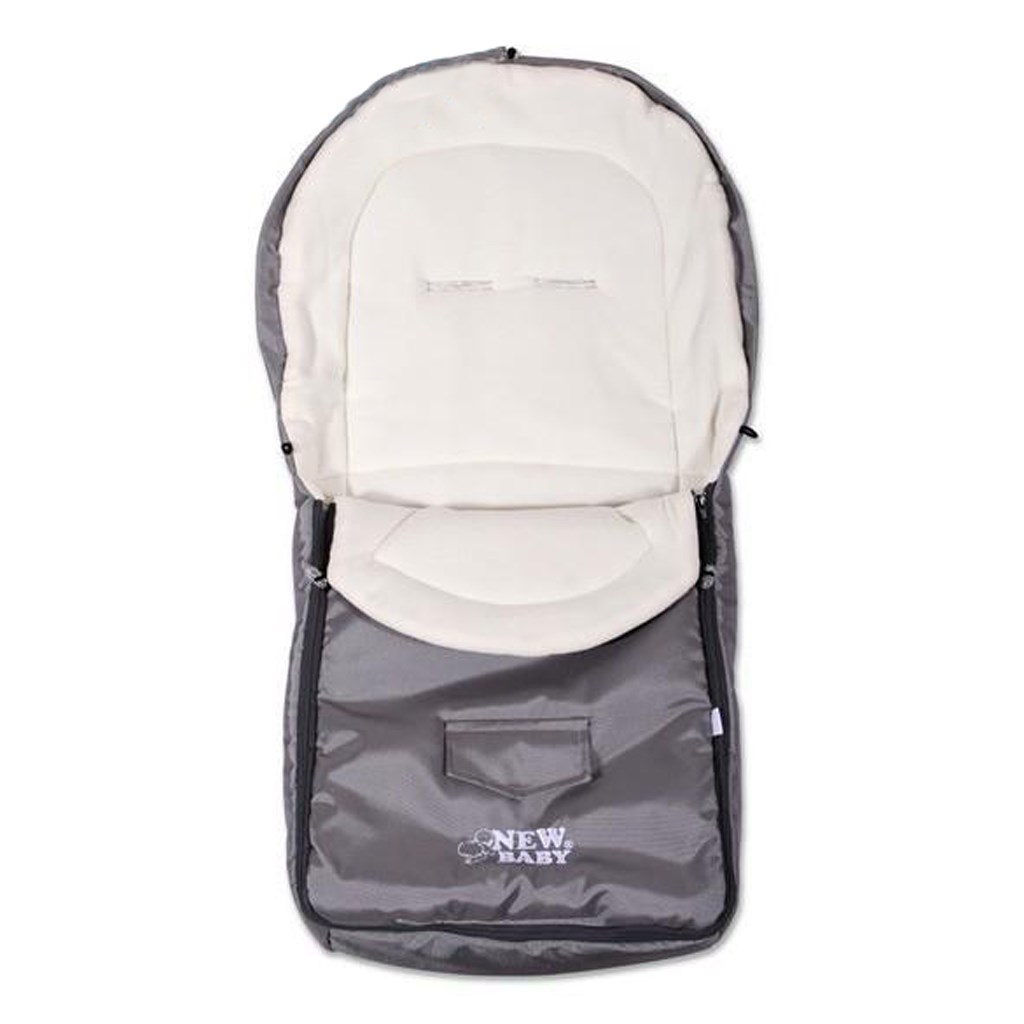 The multifunctional New Baby Classic winter fleece with fleece inner layer is ideal not only for a deep stroller or a stick, but thanks to the pre-sewn holes for the five-point seat belt fastening, you can use it in a car seat or sled. Thanks to the zippers and drawstrings, it adapts to the child and the size of the stroller. In addition, the footmuff offers a practical pocket at the top. This can be hooked onto the backrest of the pushchair so that it does not slip down - ideal especially for golf buggies. The inside of the fleece is made of a soft and comfortable fleece material. This material helps to maintain a constant temperature in the baby's body, but also prevents the baby from overheating. There is a layer of warm material between the fleece and the outer fabric, which guarantees the baby's comfort and warmth during cold and frosty days. The top of the fleece can be easily shaped into a practical hood. The top part of the fleece can easily be completely unzipped to create a very practical pad. These handy zippers on the sides of the fleece make it even easier to handle baby.