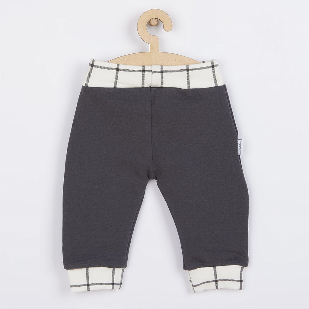 Modern and practical sweatpants from the Czech brand New Baby Cool. The sweatpants have a wider waistband with an elastic band, a wider hem on the legs and snazzy patches on the knees. The hems and patches are made of modern checkered fabric. The quality material ensures comfort during wearing. Thanks to the nice cut, the sweatpants can easily replace trousers or jeans. Customer satisfaction is very important to New Baby and that is why we offer you our quality Cool collection. 95% cotton, 5% elastane.