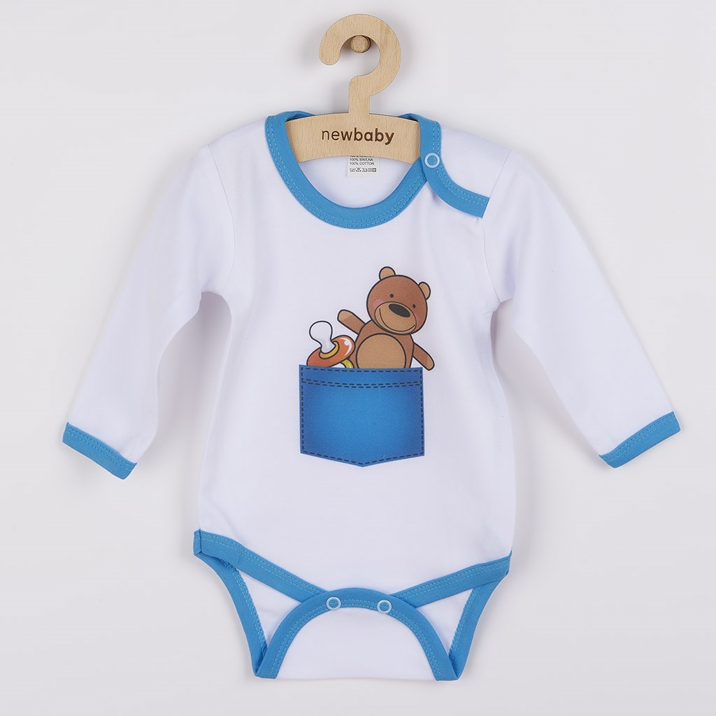 Original New Baby long sleeve cotton baby bodysuit with teddy bear picture. The bodysuit has coloured trim around the neck, legs and arms. The colours used for printing are certified and suitable for babies. It is made of a comfortable and high quality material that your baby will feel comfortable in. The bodysuit has a stud fastening on the shoulder and between the legs, which makes it easier to dress and change. Let your baby stand out in the original body. 100% cotton. Dimensions: circumference around the chest approx. 50 cm, sleeve length approx. 26 cm, total length approx. 42 cm.