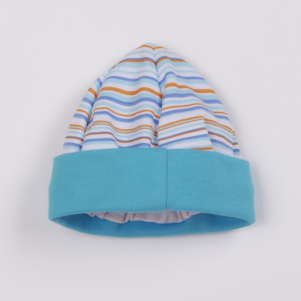 Elegant cotton baby cap New Baby Puppik 2 for babies. The cap has a wide elasticated brim that covers the ears beautifully and does not press. The cap is decorated with original stripes. Soft, pleasant and high quality material will guarantee your baby's satisfaction. 100% cotton. Circumference: approx. 30 cm.