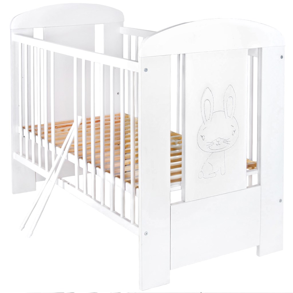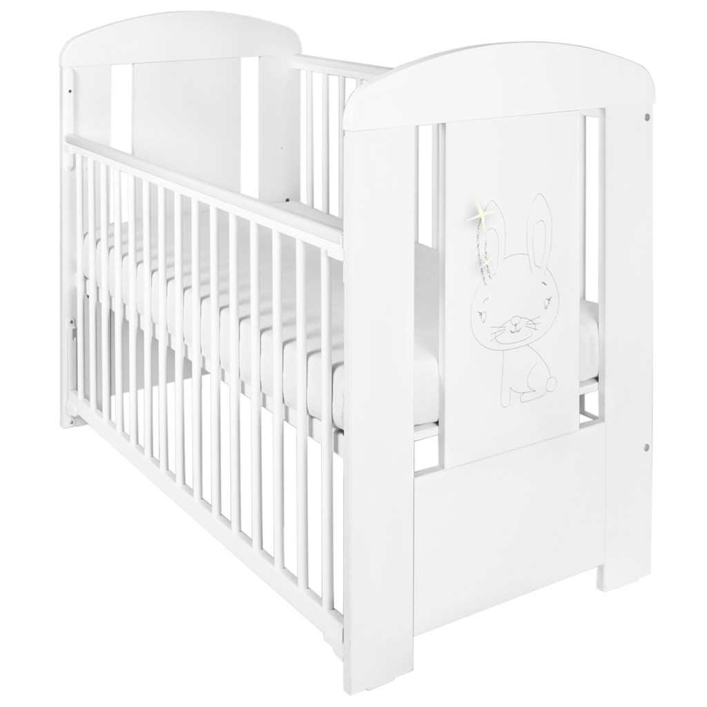 The Czech brand New Baby crib with a pull-down sidewall combines practicality, carefully crafted materials, modern and timeless design, but most importantly, it guarantees your baby a peaceful sleep and a feeling of security. The cot has two pull-out partitions. The cot grid can be adjusted to three positions and is well ventilated, guaranteeing your baby a comfortable environment for a sound sleep. Our crib is also available in standard or drawer versions. With its imaginative design, it matches the latest trends and will fit into any interior. The embossed picture of the animal shines beautifully thanks to the addition of glitter. All the materials and raw materials used in the production have the necessary approvals or certificates and therefore the New Baby furniture is completely safe and durable. When you buy a New Baby crib, you get the opportunity to use it for the next additions to your family, even for several generations.